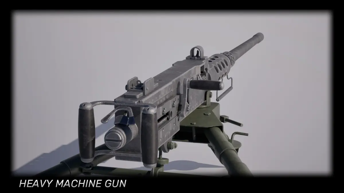 50Cal M2 Browning Heavy Machine Gun with M3 Tripod, Ammobox and bullet with link.Low poly optimized for game engines, game-ready. The machine gun is rigged and includes a fire animation. Includes 4K textures for the gun, 2K Textures for the tripod and ammo.
