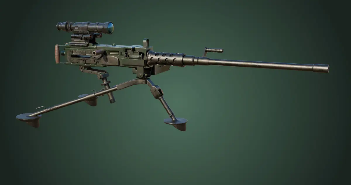 Photorealistic 3D model of M2 Browning Machine Gun05 and Stand, This Collection model is suitable for any visual production - broadcast, high-res film close-ups, advertising, games, design visualization, forensic presentation, etc.