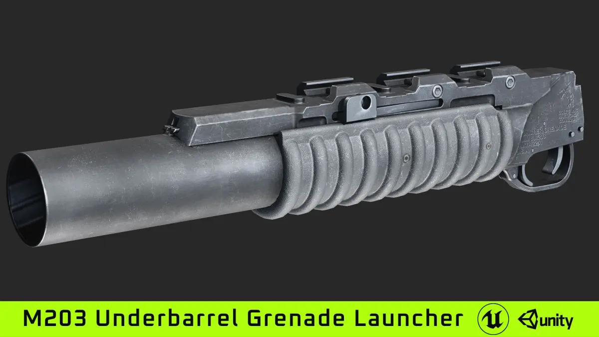 Lowpoly and realistic m203 UBGL 3d model optimized for game engines or any other usage in 3d software.