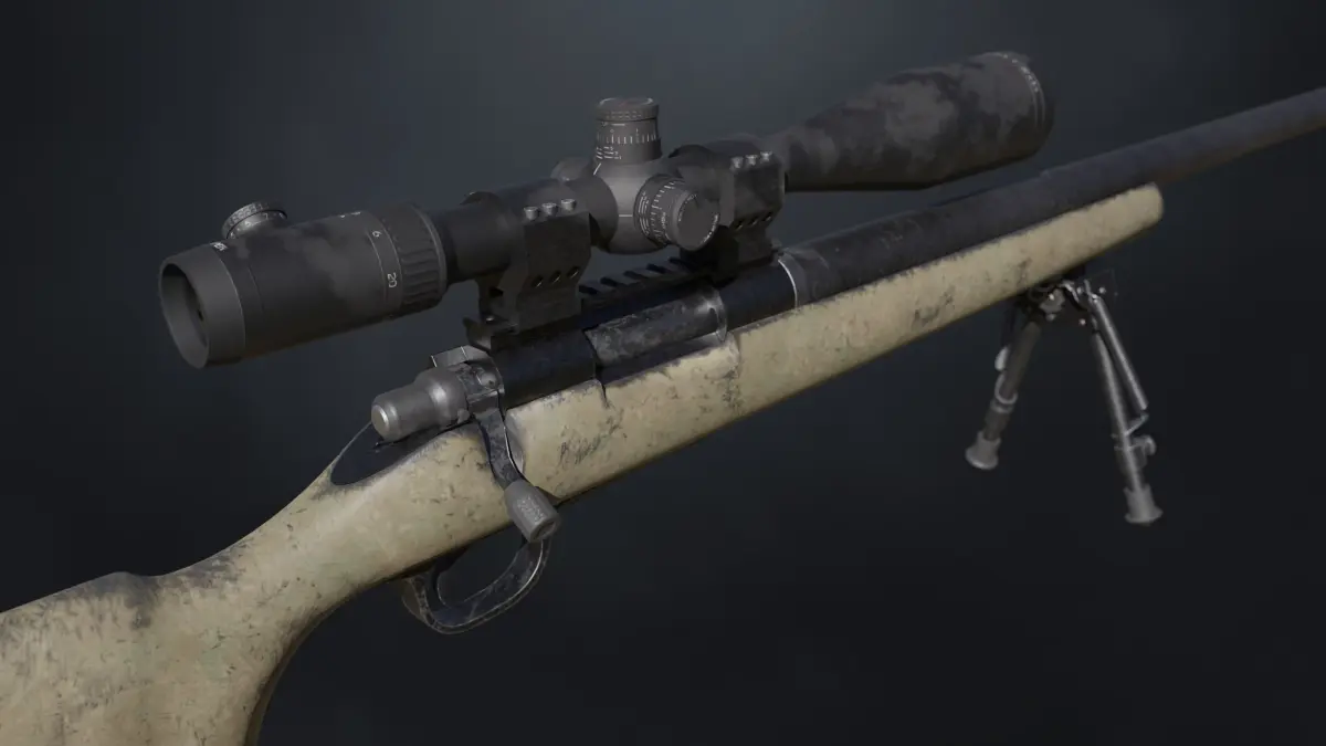 Low poly 3D model of a M24 sniper rifle with PBR materials. Model has 25 645 quads and includes 4k Diffuse, Metallic, Roughness and Normal maps. All the moving parts are separated into vertex groups for easy rigging/animating. Rendered in Blender (Cycles).