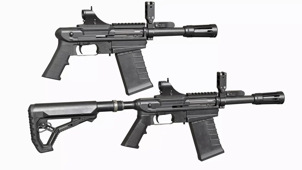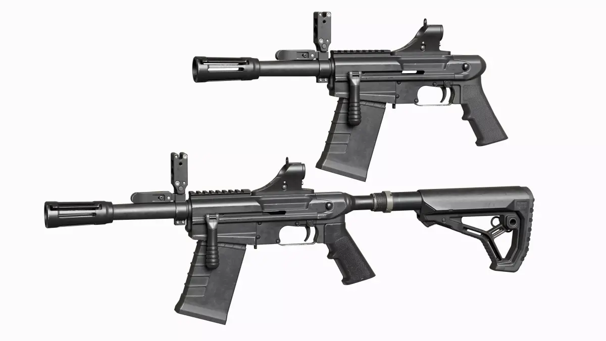 The modularity of the rifle is that all customizable parts, such as the magazine, pistol grip, stock, etc., have a unique, separate atlas texture. All parts are modeled according to real dimensions, and you can easily replace one part with another.