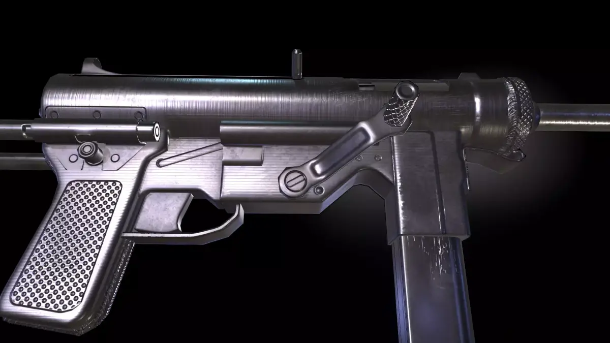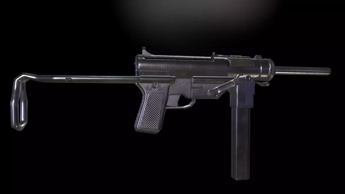 Low-Poly M3 Grease Submachine Gun Animated Model for games, animated films, etc.