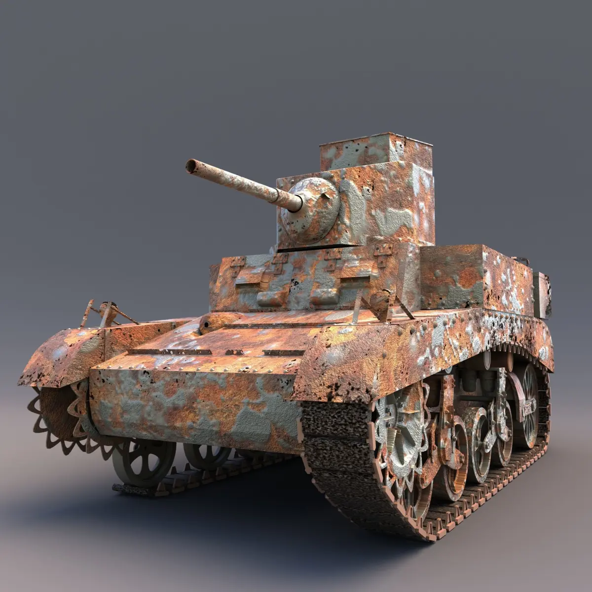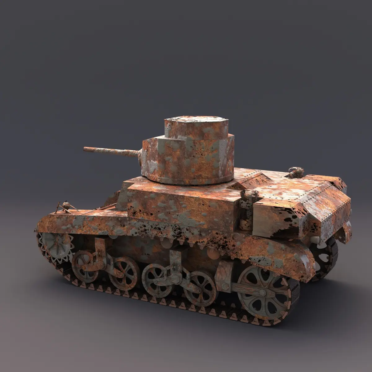 Wreck of American Light Tank M3 Stuart Military historical second world war. The model is to represent a wreck that has been in the ocean for a very long time. It is modeled on the pictures of such vehicles