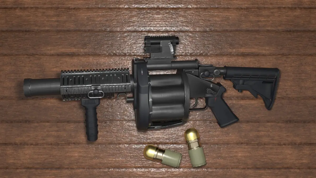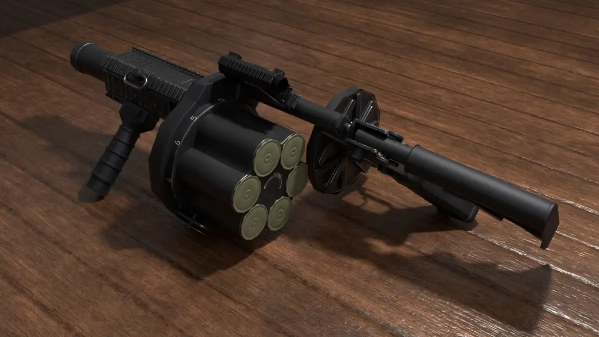 This is a high quality, low poly model based on an M32 Multiple Grenade Launcher, and designed for game/ real time use. This Model was not intended for subdivision. Normal maps are baked from a high poly model to add greater detail while using less memory. The textures contain no licensed markings. The weapon is separated into separate parts for ease of animation (M32_Front, M32_Rear, Sight, Mount, Grenade and Shell). The textures for the front and rear come in both 4096 X 4096 and 2048 X 2048, the sight and mount are 2048 X 2048 and the grenade and shell are 1024 X 1024. Model and Textures tested in Unity 5 and Unreal Engine 4. This package includes general textures, and also textures tailored to Unity 5, Unreal Engine 4, and Blender 2.79. Polygons: Front; 4604 tris; back; 4822 tris; sight; 1942 tris; mount; 1032 tris; grenade; 360 tris (X 6); shell; 216 tris (X 6)