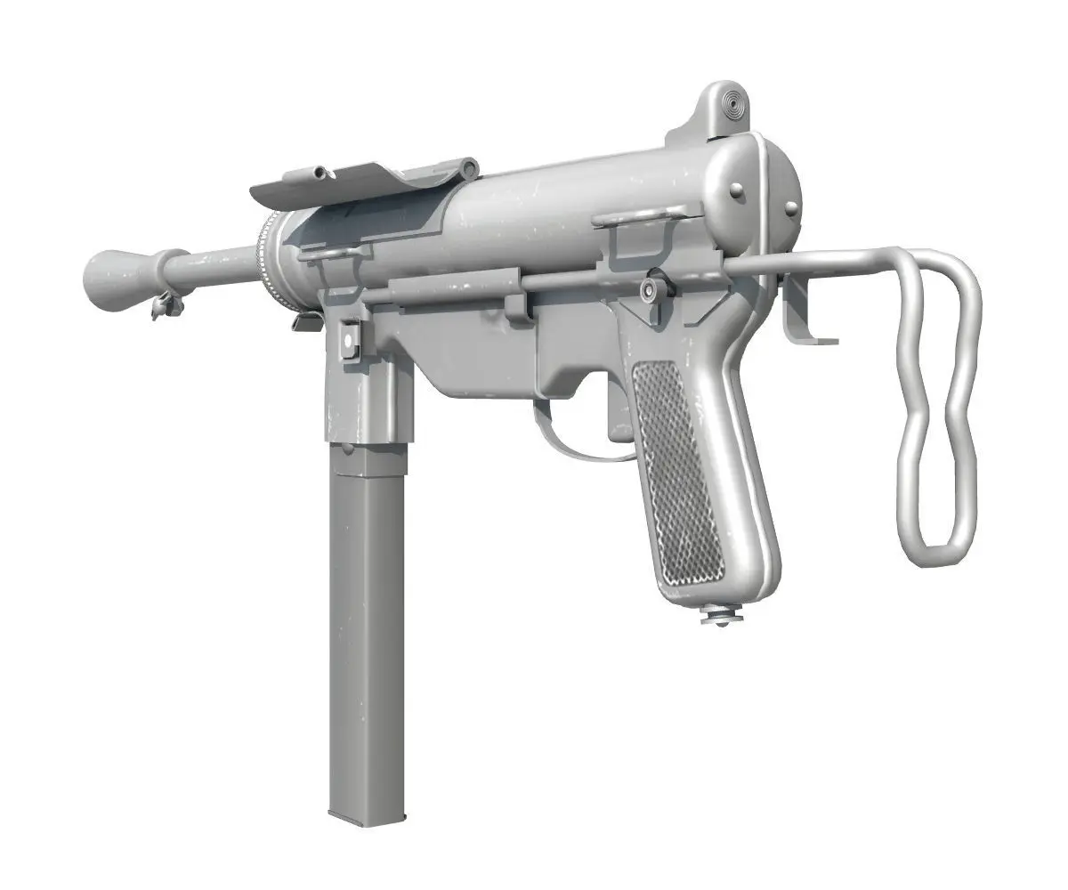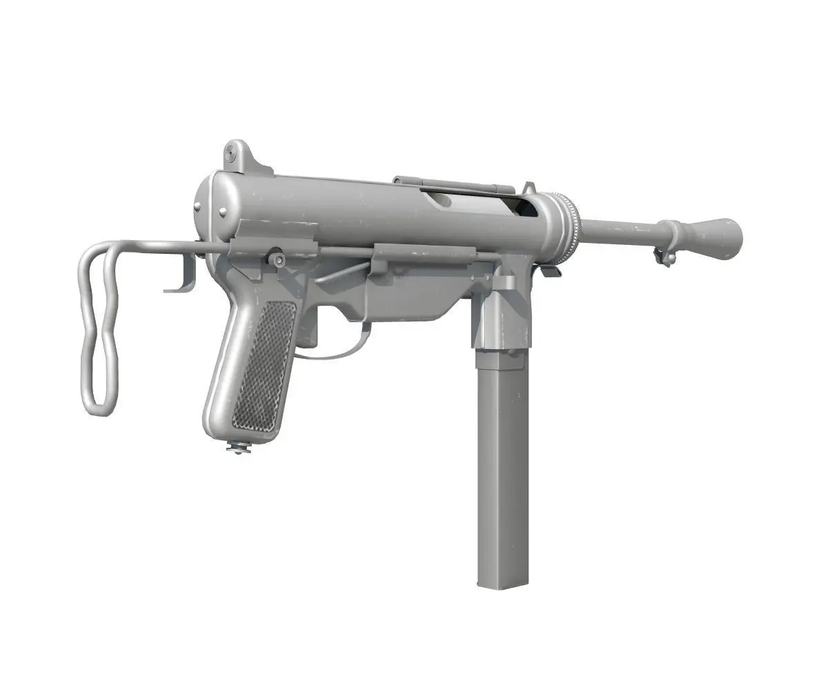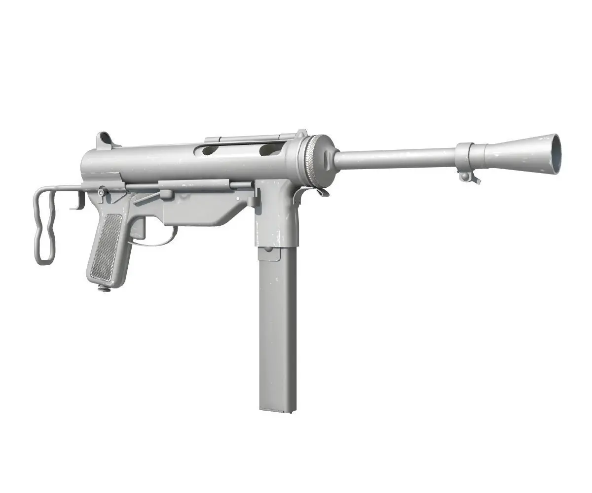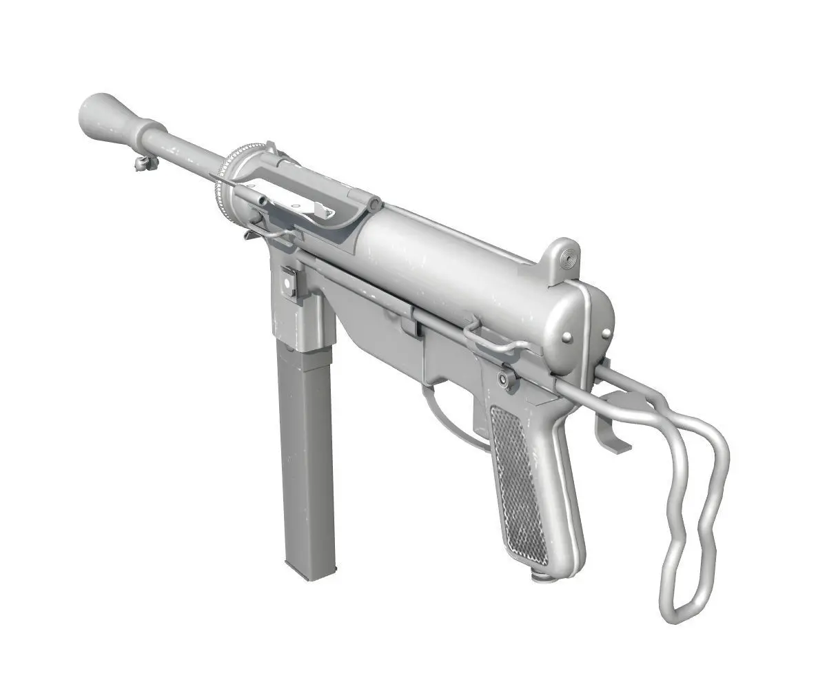 M3A1 Grease Gun Sub-machine gun. Trigger and magazine are separate objects. Complete single UV texture map.
