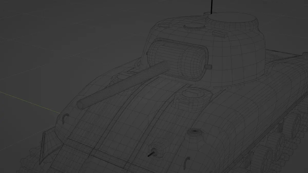 Low poly M4 Sherman tank model29962 polygon31141 vertexThe coatings are made with pbr substance painter as 4096pxuv maps opened pallet made with Bezier Circle easily animate