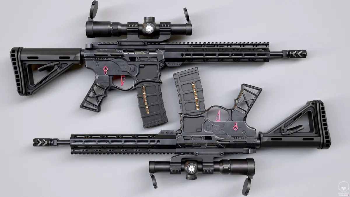 This includes - Body (Main Part for the M4) - Trigger - Stock - Handguard Rail - Barrel - Muzzle - Magazine - Charge Handle - Scope - Pistol Grip - Bolts