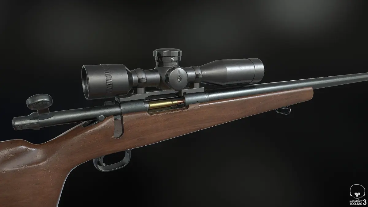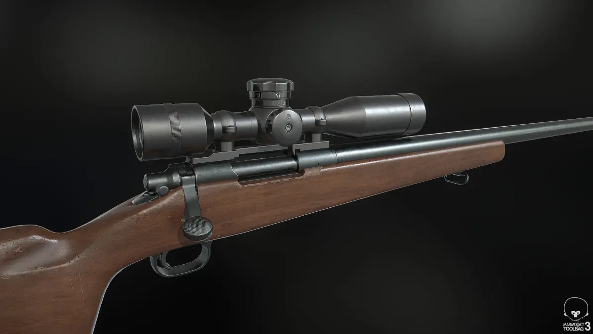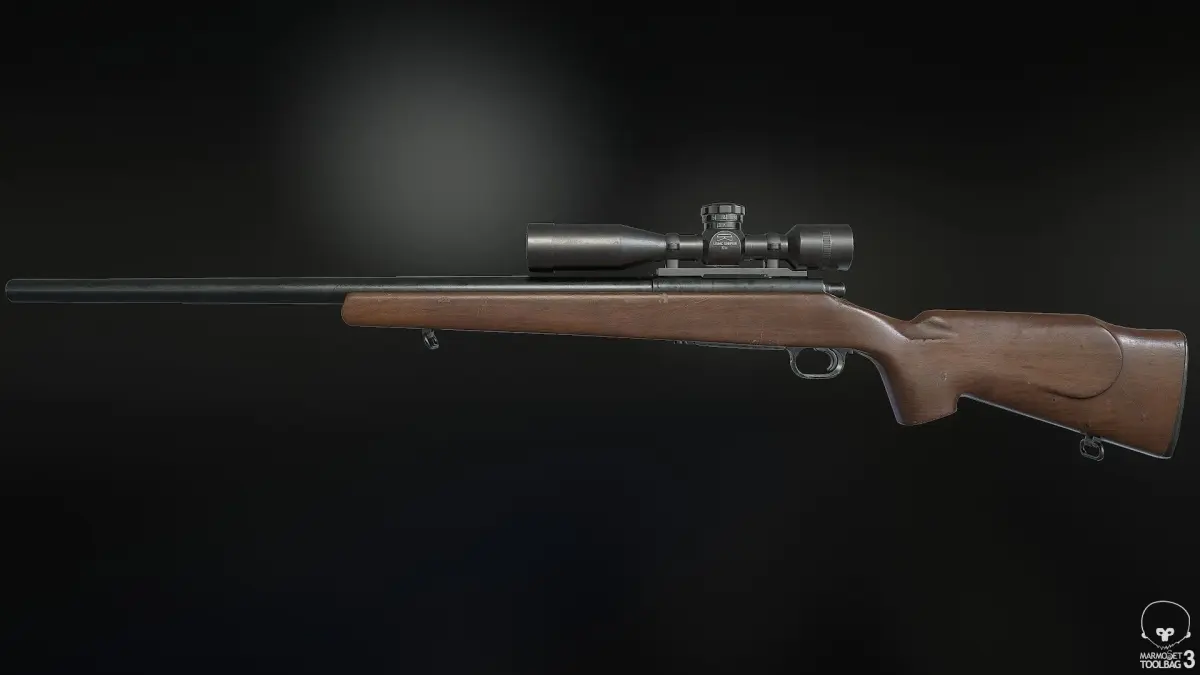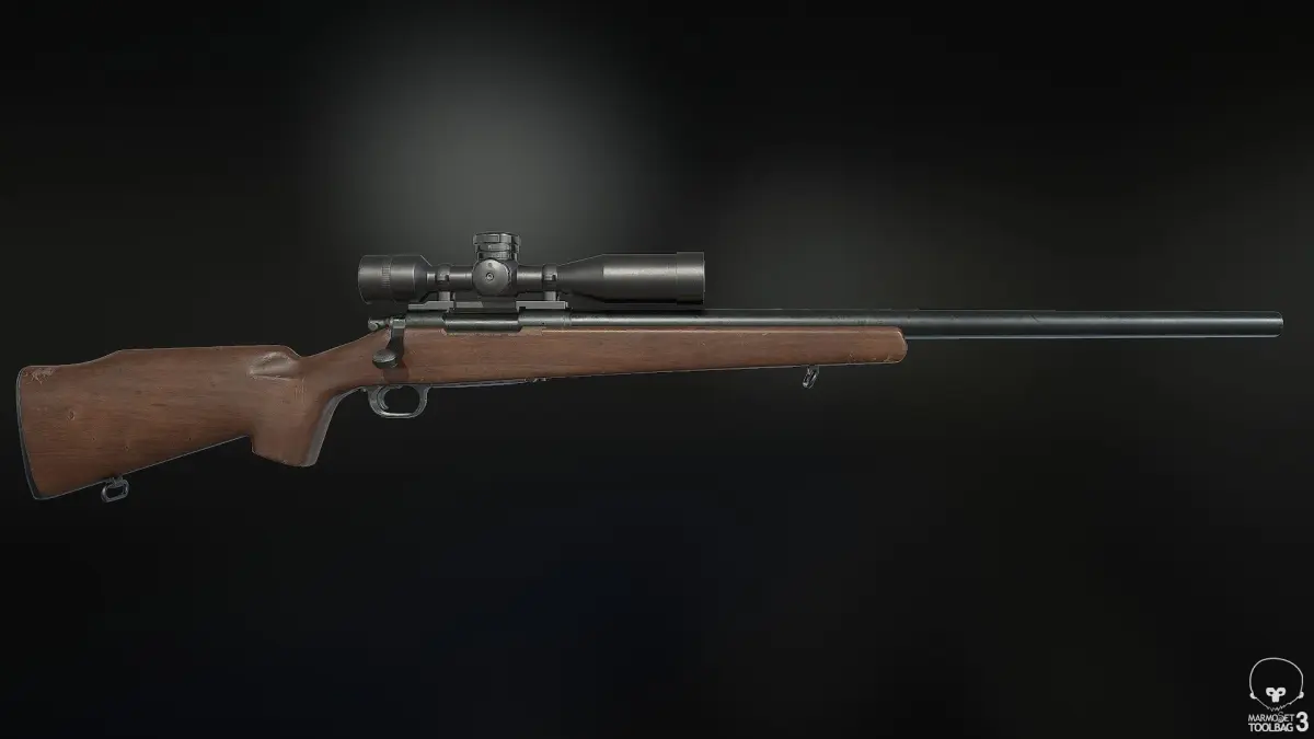 - The weapon is separated into objects to make animation easier. Movable parts include the bolt, safety, and trigger. The scope can be removed if desired.