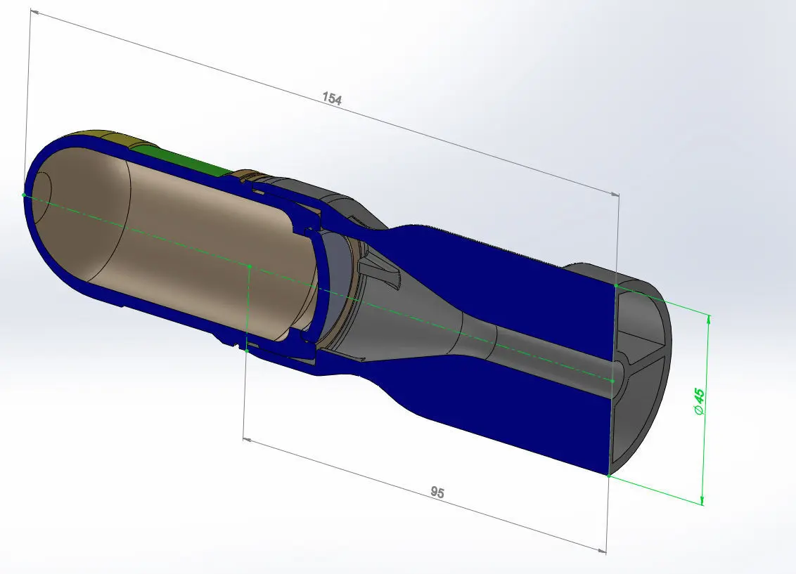 replica simulation of a standard grenade and an aerial bomb for drones.