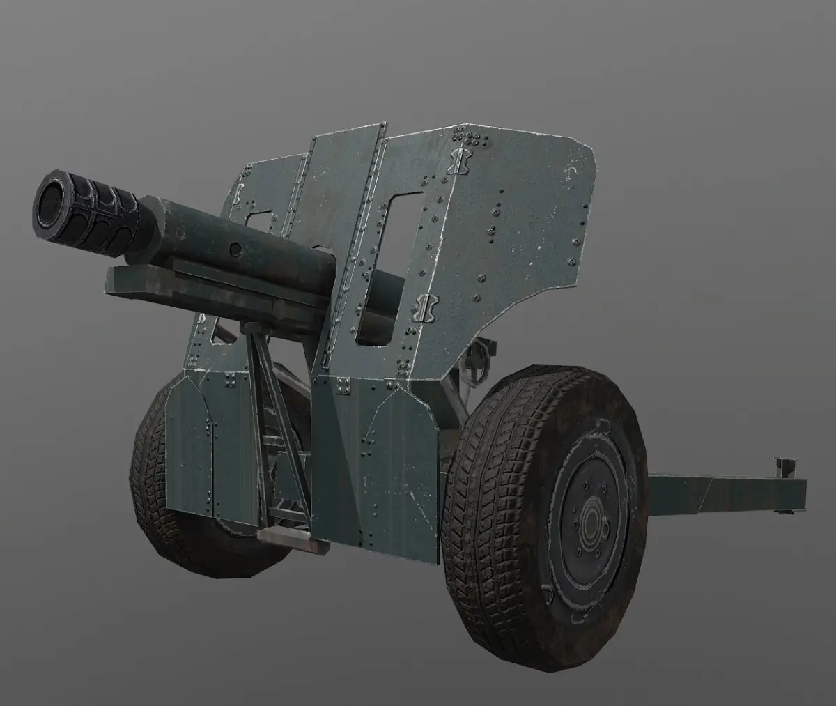 The 76 mm mountain gun M-48.Low poly modeled in Blender. PBR ready game asset prop.