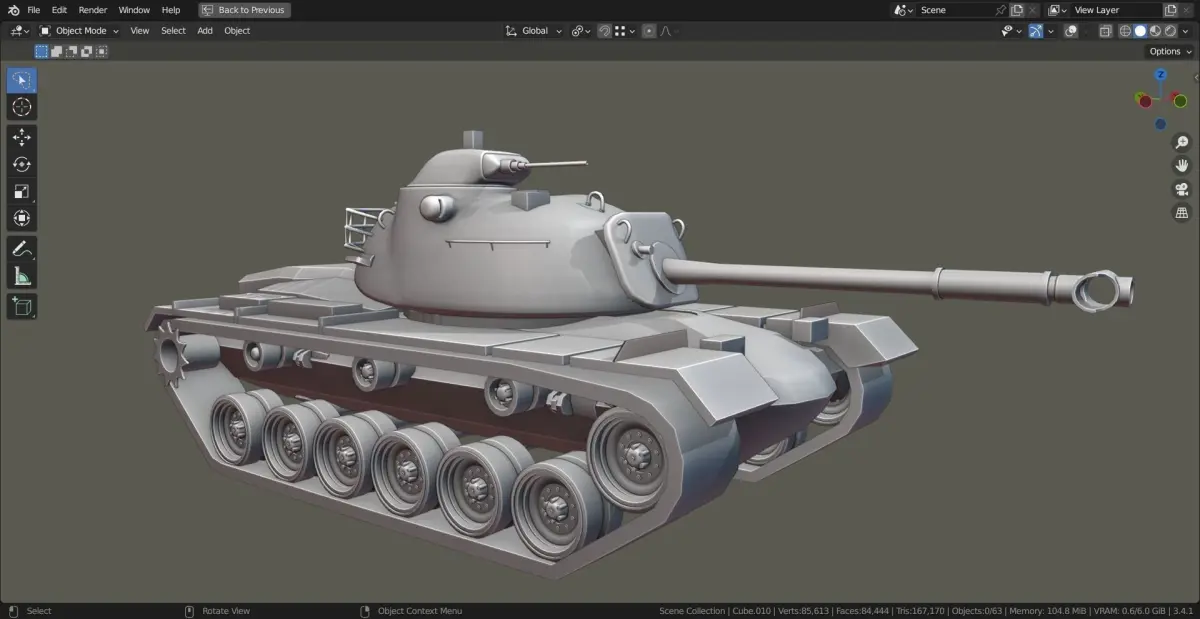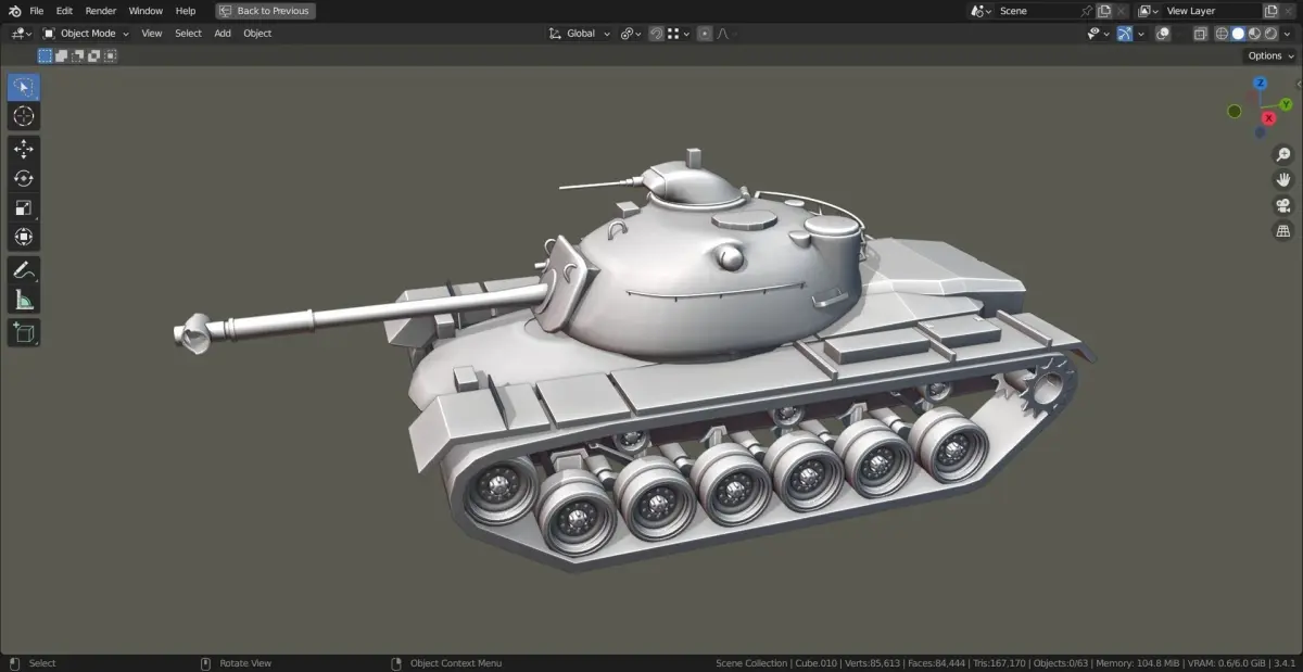 Model is made in Blender 3.5. it is a base mesh model. Made to scale, Blender units. Part of a larger collection of base mesh tanks.