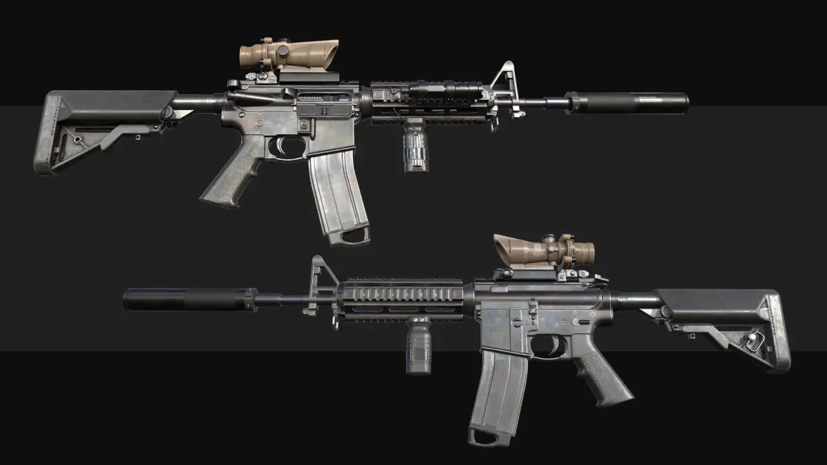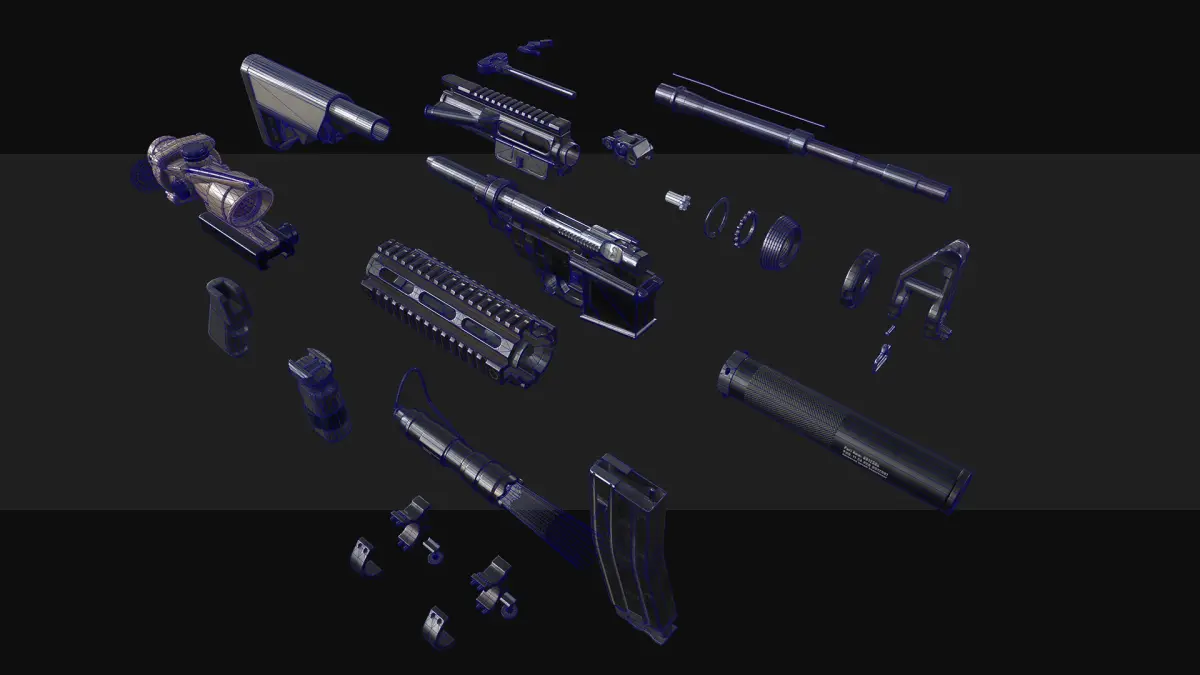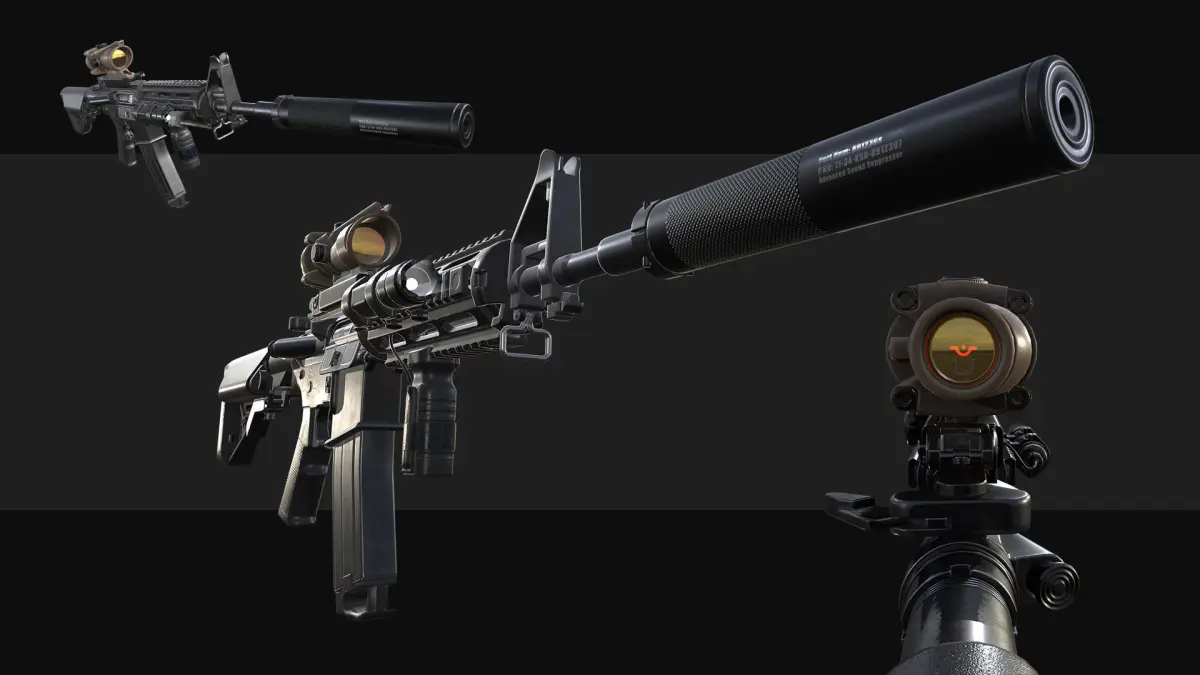 M4A1 with AttachmentsTripple A game QualityAll parts mapped separately Low poly and game ready model.10 PBR, Metalic maps.Files and maps included:FBXBase color MapNormal MapMetalic MapRoughness MapAmbient Occlusion Map
