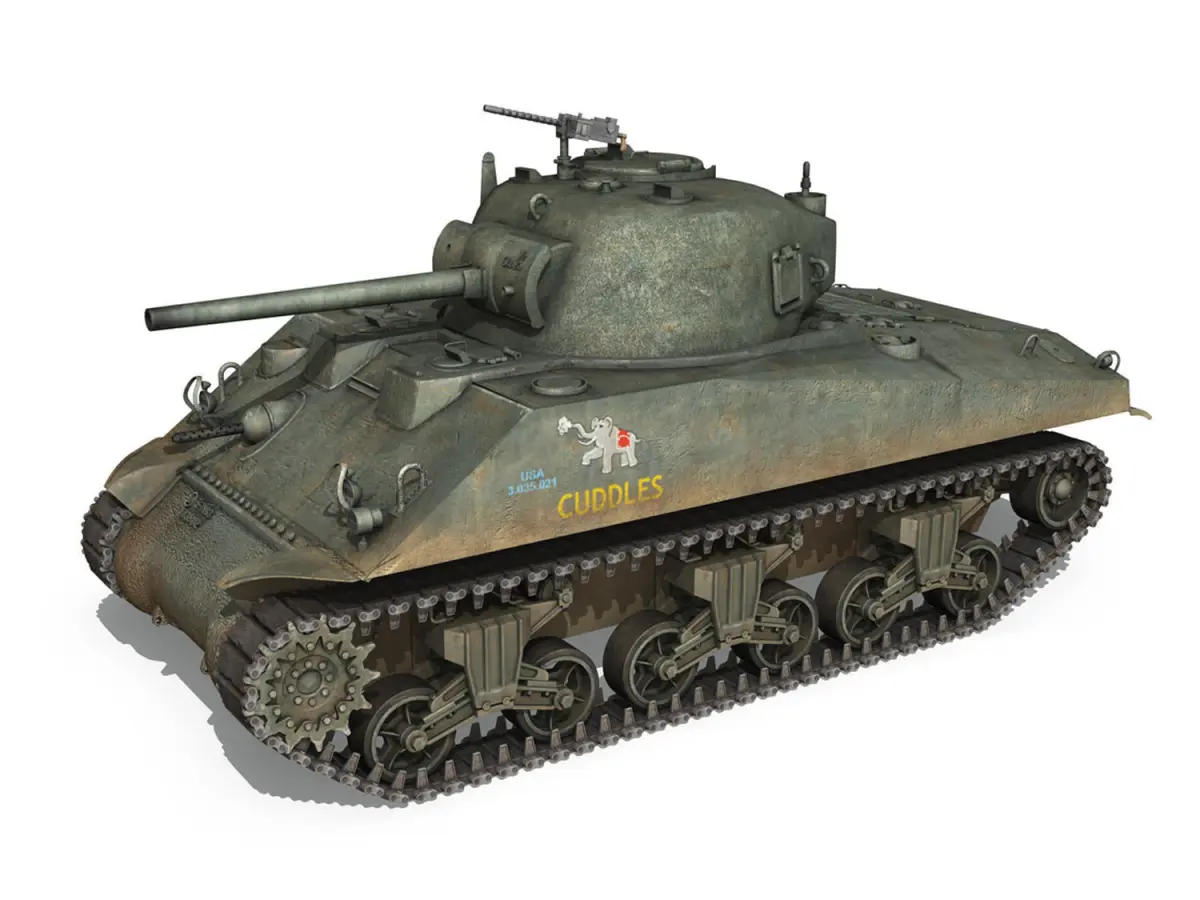The M4 Sherman, formally Medium Tank M4, was the primary tank used by the United States duringWorld War II. The M4A2 was the only diesel engined version of the Sherman tank to see service in large numbers, mainly serving with the USSR as Lend Lease equipment and with the US Marines, the British and the Free French. As a consequence of having a diesel engine, the M4A2 version's engine deck and back end is distinctly different from all other versions of the Sherman.