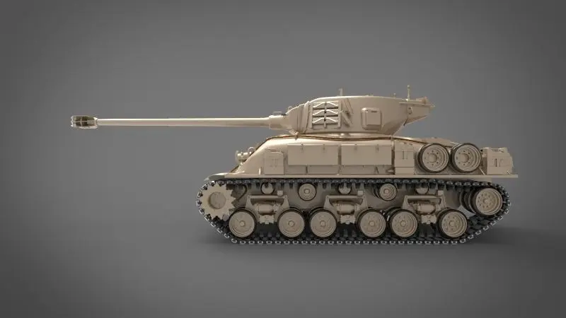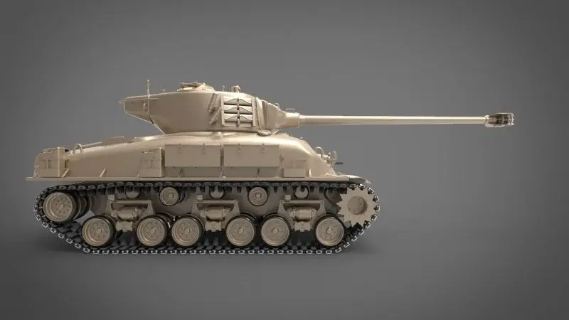 The 3D model of the M50 Sherman tank highlights its significant upgrades from the original M4 Sherman. This detailed representation features the tank's powerful French CN 75-50 75mm gun, which enhanced its firepower considerably. The model captures the unique design modifications, including the larger turret, improved suspension, and additional armor, which were implemented to meet the demands of modern warfare. The M50 Sherman played a crucial role in the Israeli Defense Forces during the 1956 Suez Crisis and the Six-Day War in 1967, and the 3D model brings to life its historical significance and engineering advancements, making it an essential piece for military enthusiasts and historians alike.