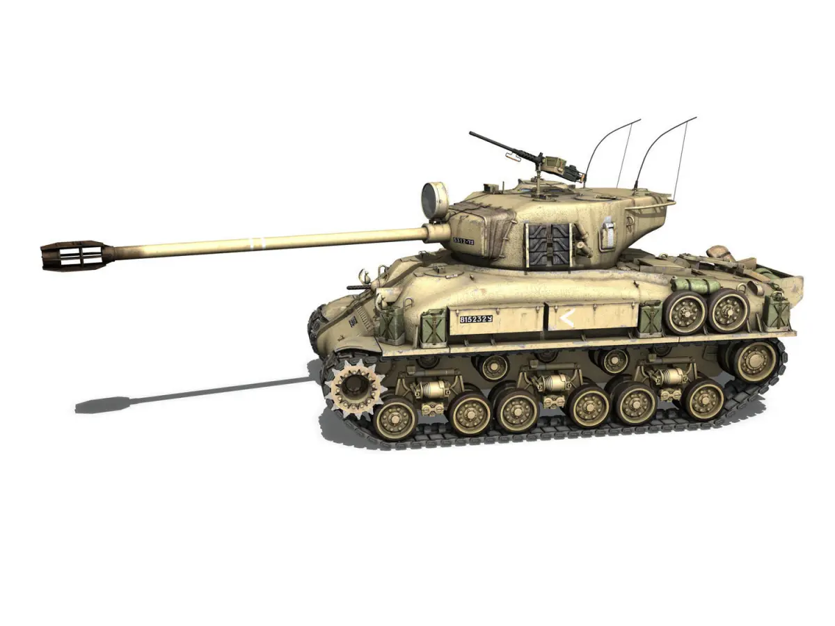 M-51 Israel Super Sherman - Conversion from M4A1 hulls with a new Turret and the French 105 mm CN 105 F1 gun. All tanks were fitted with Cummins diesel engines and HVSS suspension.