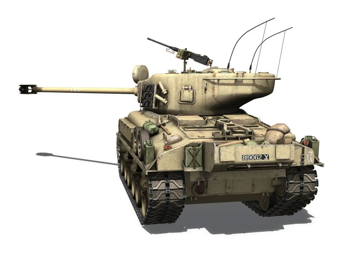 M-51 Israel Super Sherman - Conversion from M4A1 hulls with a new Turret and the French 105 mm CN 105 F1 gun. All tanks were fitted with Cummins diesel engines and HVSS suspension.
