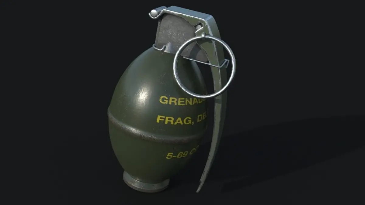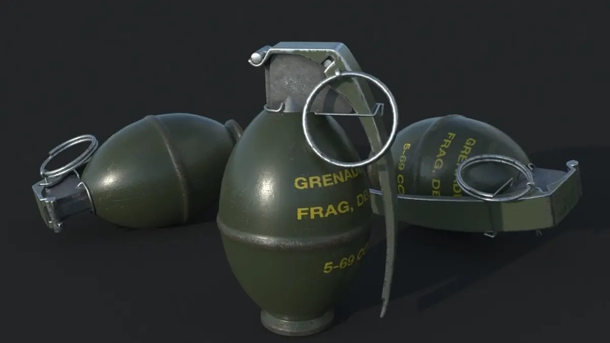 The M61 was a standardized fragmentation hand grenade utilized primarily by the United States and Canadian armed forces during the Cold War. The M61 was essentially a variant of the M26A1 production series grenade being issued by world parties in great numbers, that is, with the exception of an additional safety clip added to her design. The clip was affixed to the lever to help eliminate accidental detonations of the grenade if the base pin were inadvertently pulled. The clip came to be known as the Jungle Clip due to its development based on American experiences in the jungles of Vietnam during the Vietnam War. M26 grenades were prone to snagging on the jungle underbrush, causing unplanned and lethal detonations on a number of occasions. The M26 and M61 types were ultimately replaced by the more modern M67 series after the war.Outwardly, the M61 mimicked much of the appearance of the M26 family before it. The basic design consisted of a smooth-sided case (as opposed to the famous pineapple grenades of World War 2) with the integrated safety pin, curved safety lever and jungle clip. Due to the addition of the jungle pin, the operator now needed to pull the safety pin ring, then the safety clip and release the lever (also known as a spoon) before the grenade's fuse was made active. The manual activation of the grenade initiated an internal firing pin which struck the primer within and ultimately triggered the fuse - this lasting between four and five seconds time, usually enough for the operator to throw the grenade without much fear of the enemy having time to return it. (Source: militaryfactory.com)