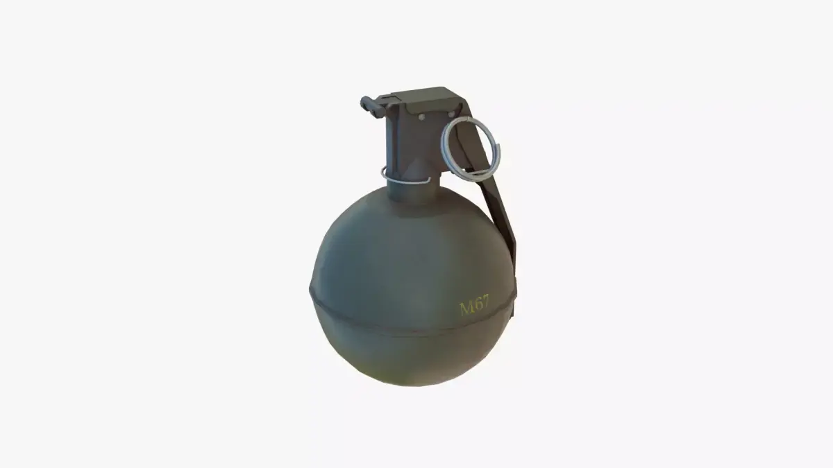 Realistic 3D model of an M67 fragmentation grenade (inert prop) — highly detailed, PBR-ready, optimized for games, films, and visualization. Clean topology, texture-mapped, and ready for close-up renders or real-time use.
