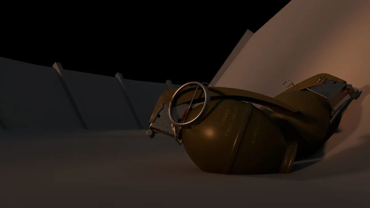 Rustic M69 Hand Grenade with sorrounding composition, lighting and textured in substance painter.