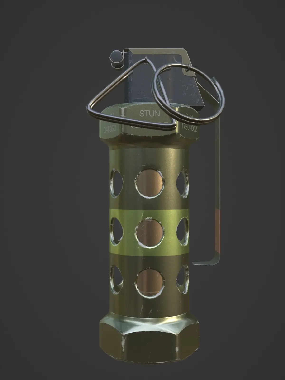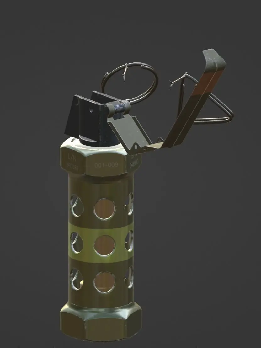 This model is a 3D model of M84, the US military's standard flash grenade. Although it was produced based on the actual blueprint, there may be differences in some details. Key elements such as the safety clip, ring, and lever are individually removable. File formats available include OBJ, FBX, and STL, ensuring compatibility with a wide range of 3D software and applications.