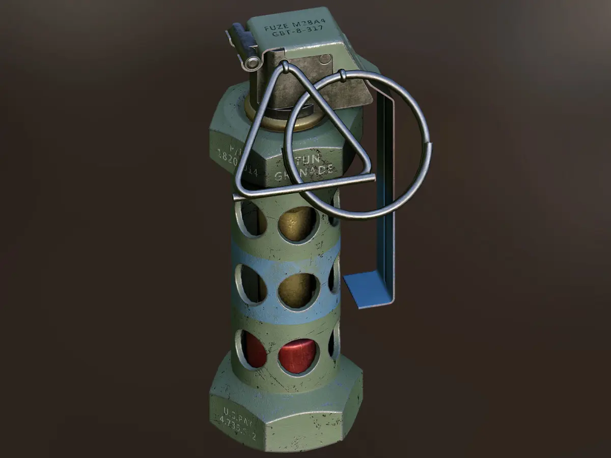 Game ready M84 Stun Grenade model created with Blender 2.924K Textures(*.png [in blender.zip file] and jpg format)