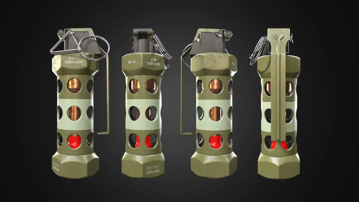 Lowpoly M84 STUN GRENADE game-ready model with PBR-textures