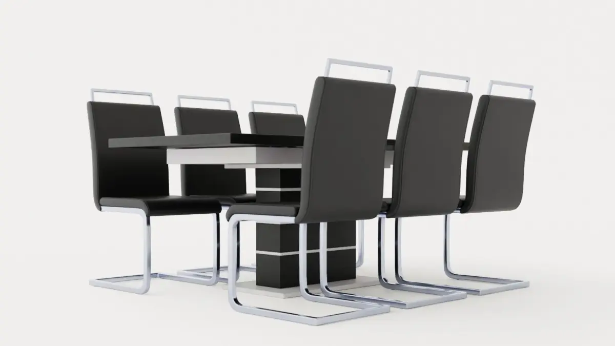 Macahan Table 140 6 Isoda Chair Black And White Low-poly 3D model