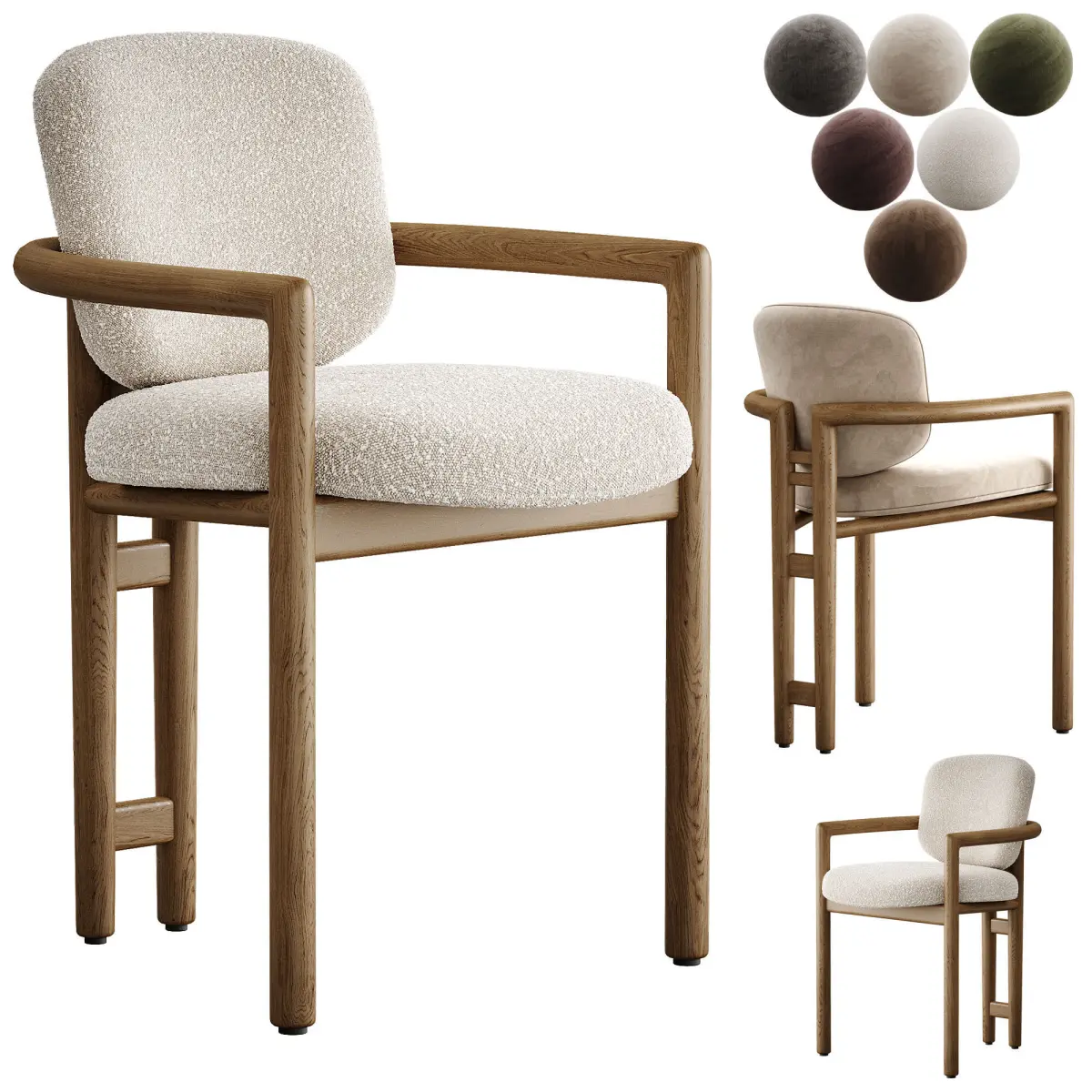 Name: Macayle Modern Classic Beige Performance Upholstered Brown Oak Dining Arm ChaiFormat: 3Ds Max 2021Export: FBX, OBJ, 3DS, MATRender: Corona Polys: 23352Verts: 26664Units: Centimeters