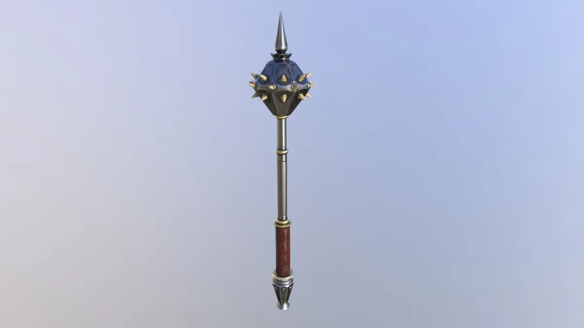 3D model of a mace with bone spikes. The model is completely ready for loading into the game engine, it contains two texture sets 2048*2048 in the source file, the modifier stack is not collapsed. The kit includes a high-poly model (1.4b polygons) that can be used for 3D printing.