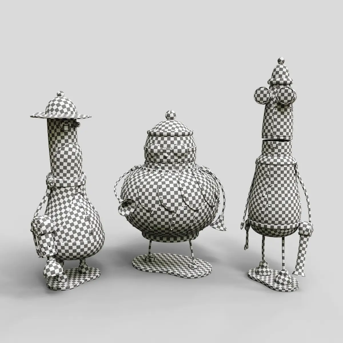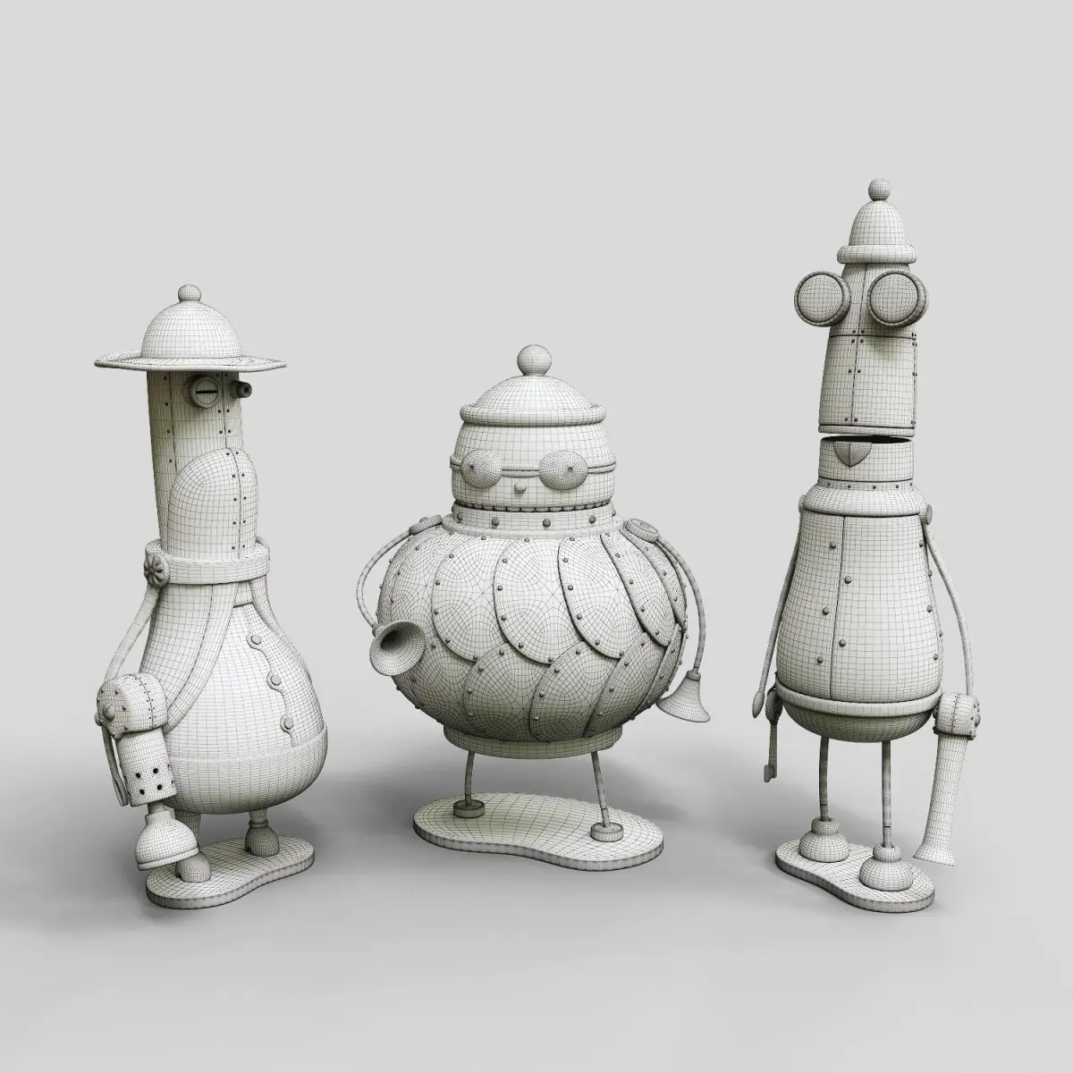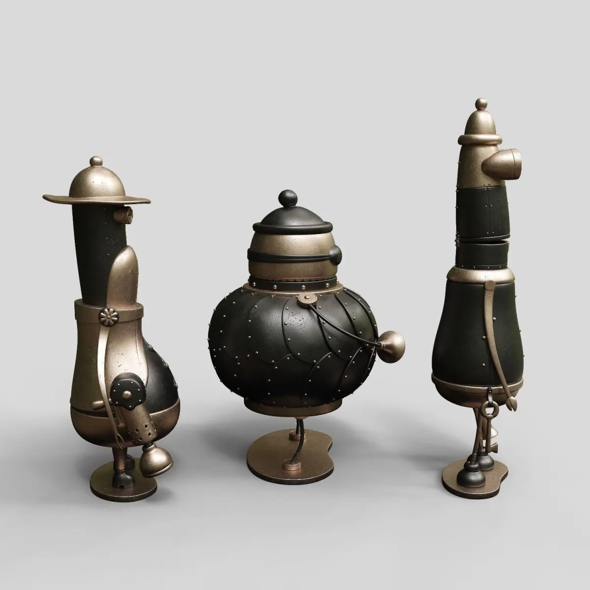 Small collection figures inspired in Machinarium. Oriented to the decoration of interior spaces or children's playrooms, although originally they are conceived to be exhibited as small collectible figurines.Dimensions (6 x 6 x 12 cm)