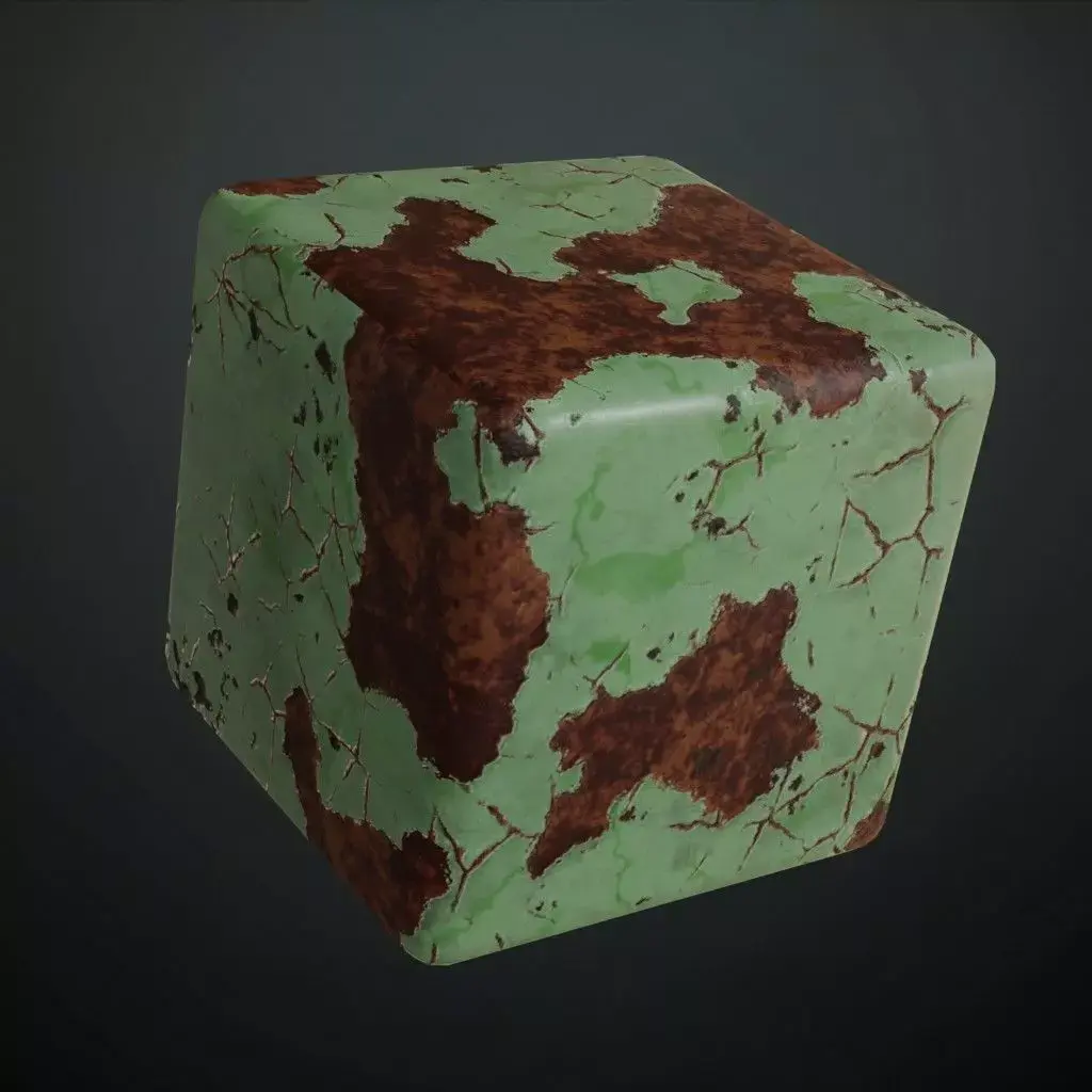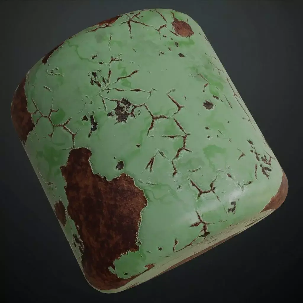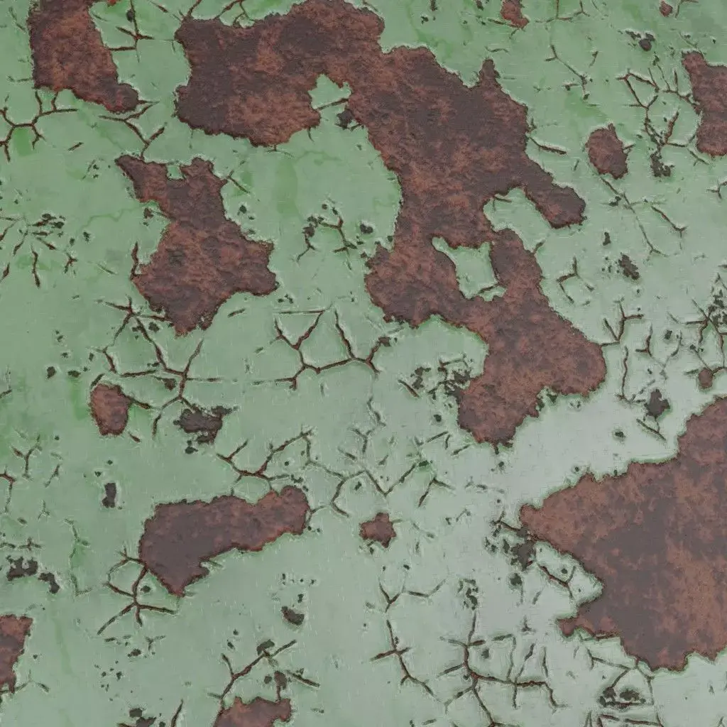 This is a high-quality PBR Texture Pack of a Machine Chipped Paint surface. All essential Maps, including BaseColor, Normal, Roughness, Height, and Metallic, are provided to deliver a highly realistic and weathered industrial finish. This material features a thick, pale green industrial coating that has undergone significant environmental stress. The surface is characterized by large, irregular areas of chipped paint revealing a dark, oxidized metal substrate underneath, complete with intricate cracking and surface grime. This texture is an ideal choice for heavy industrial machinery, aged factory equipment, weathered shipping containers, or derelict urban environment assets where a high degree of urban decay and realistic wear is required.
