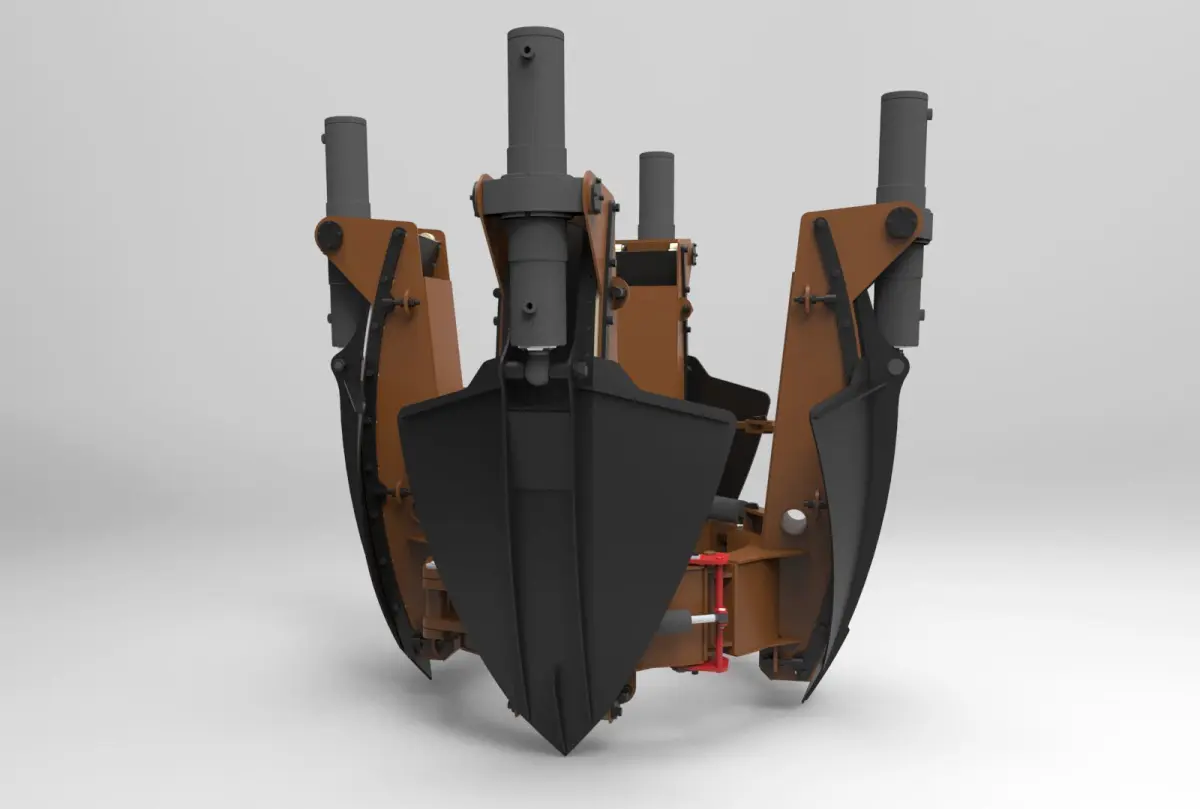 This is a preliminary model of a machine for replanting trees with a trunk diameter up to 180mm. The archive contains all the details that are displayed in the picture. Theoretically, it is possible to make a real prototype using this model.