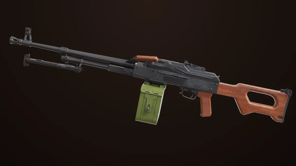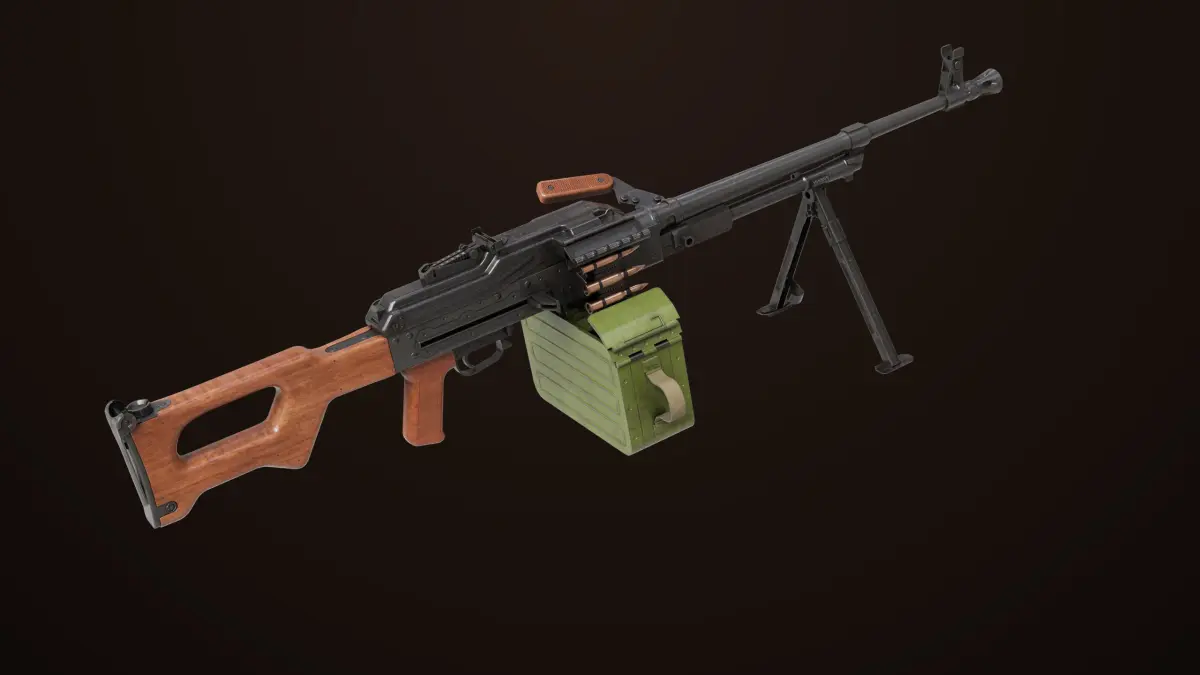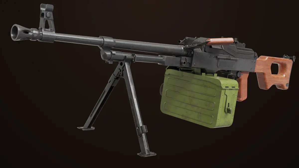 The Photorealistic 3D model of Machine Gun 11 Wood Handle PKMGeneric 3D Model. This model is suitable for any visual production - broadcast, high-res film close-ups, advertising, games, design visualization, forensic presentation, etc.
