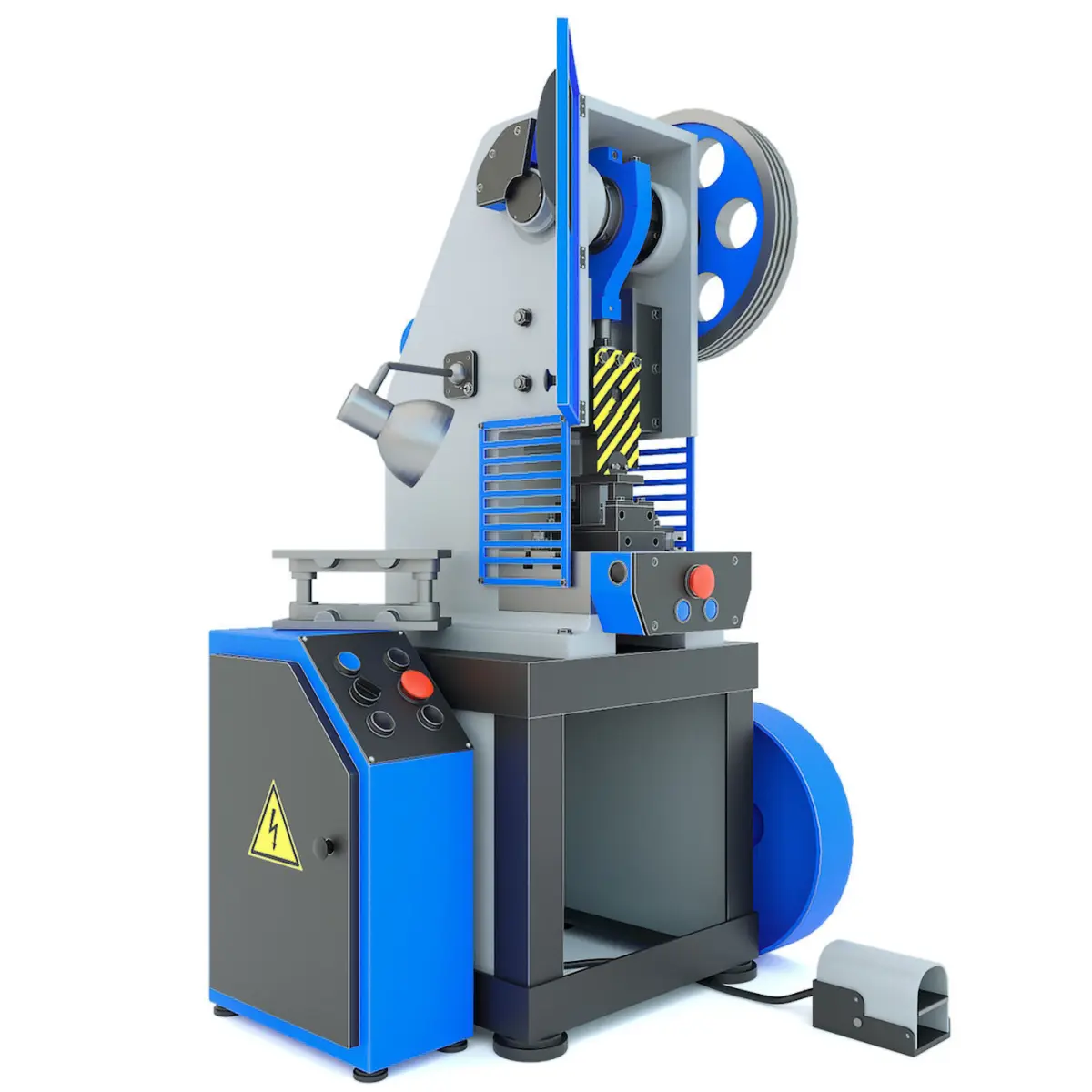 3d model: The K2116B mechanical press machine is a highly detailed model designed, among other things, for industrial projects with maximum realism. A computer model of a single-crank press of the K2116B type is a very, very well-developed, a detailed version of the stamping machine with a fairly large set of indicators, which, of course, under certain conditions can be implemented in the direction of graphics. For example, all the same press that appears under the abbreviation K2118B, which has sufficient force for certain stamping works will become a very promising unit for implementation in 3d. After all, it is such and similar equipment that can be successfully used it would be better to place it in certain production conditions. After all, the press has become very widespread and can perfectly fit into almost any project as the main model or become an element of a much-needed industrial environment. As you can see in the render images we have presented, that in the process of creating a press even the smallest elements that relate to bolts, nuts, and screws were worked out. At the same time, a high level of elaboration of all nodes was implemented the press machine, which in the total feed in the positive barb was displayed on the appearance of the machine from the most presentable position. All spare parts and accessories the components of the press were recreated by us on the basis of real pieces of equipment of this type.