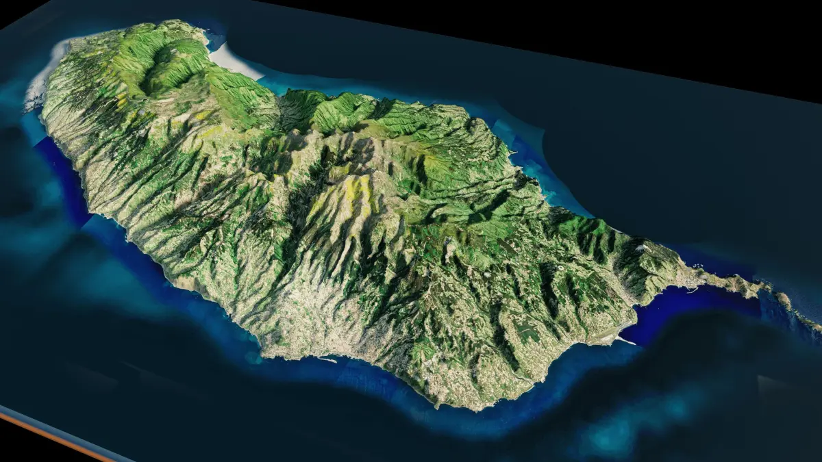 Madeira Island full 3d model terrain. 3d model of the Island of Madeira with its landscape of mountains, beaches and forests