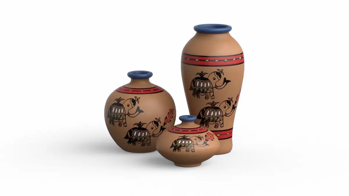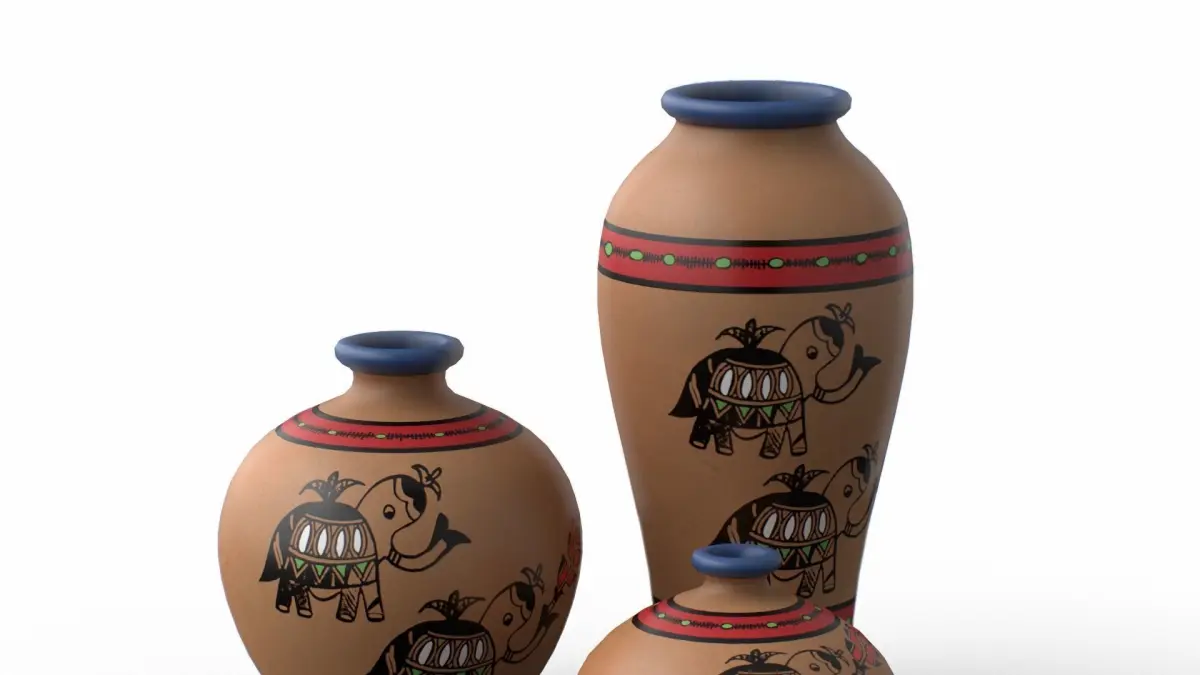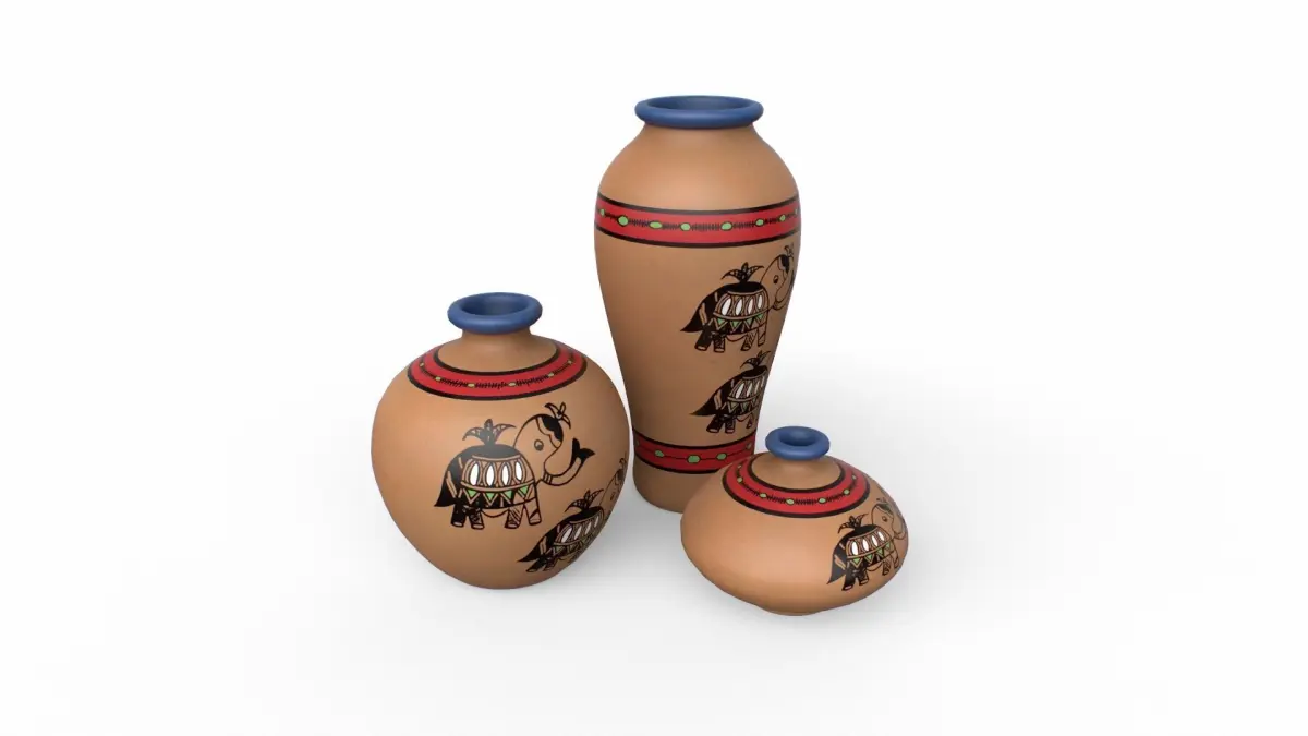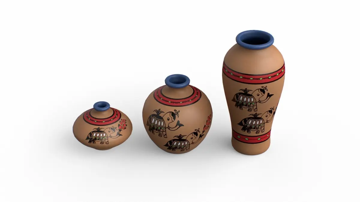 Madhubani Coral Terracotta Pots Low-poly 3D model