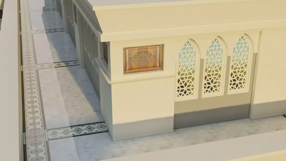 This is a high-quality 3D model of a Madina Mosque part with Minaret, carefully designed in SketchUp, detailed in Blender, textured with PBR materials, and rendered in Lumion.The model includes a mosque building section along with a traditional Islamic-style minaret, making it suitable for: