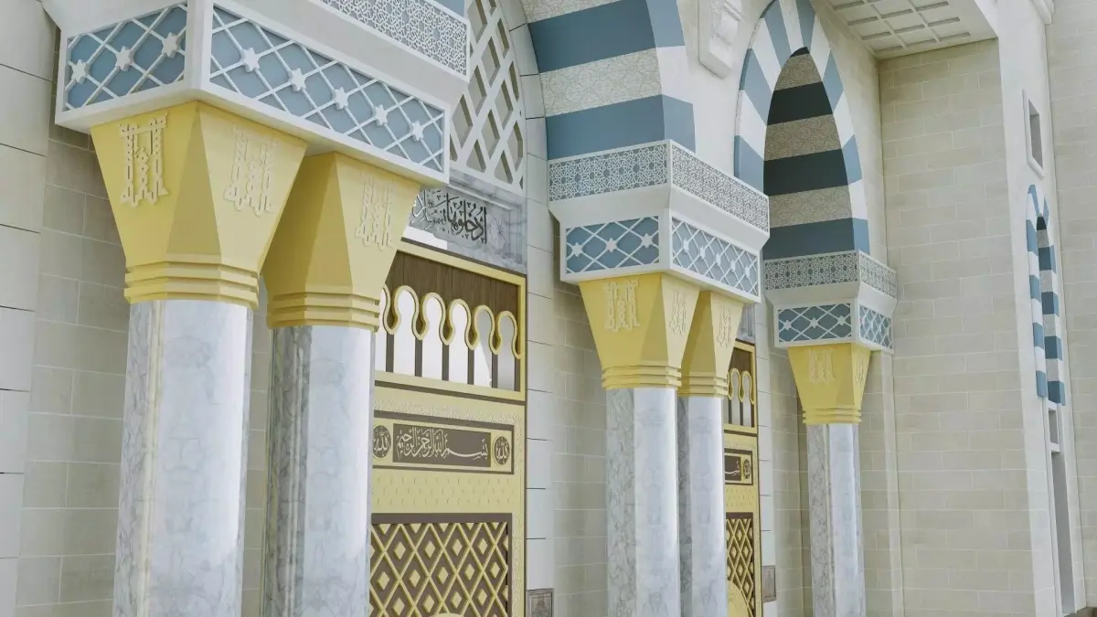 - Integrated Islamic patterns and 3D calligraphy