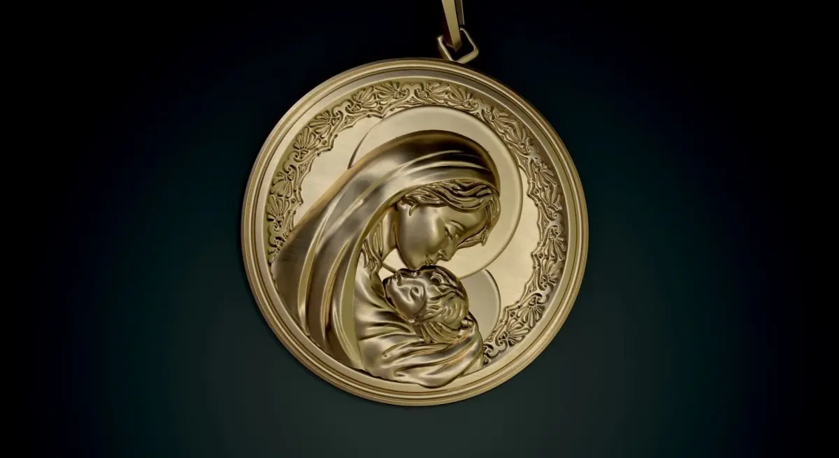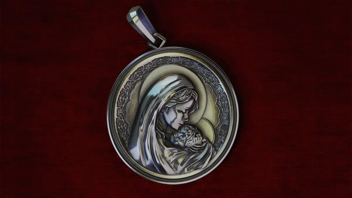 Madona pendant, both for printing and for CNC, pendant diameter 28mm, approximate weight in silver 13 grams, in another material you can recalculate for yourself, volume and size data are indicated in the screenshot, if you need adjustments or changes in the model, please contact