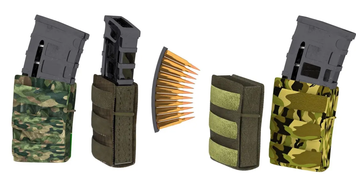 model of a magazine pouches set and bullets clip (A High Quality Photo Real model for a magazine will enhance detail and realism to any of your rendering projects.)