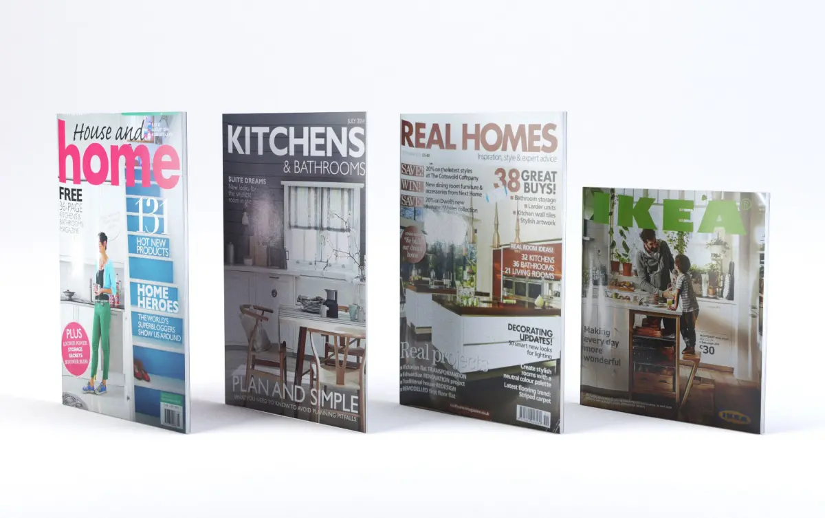 -4 magazine model (3 Design magazines&Cathalog)-3DS, FBX, OBJ, DAE file format-4 DIFFERENT TEXTURE MAP + NORMAL maps.-Rendered images