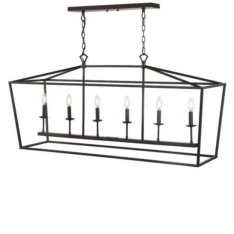 - Take your dining ensemble from simple to stylish with this must-have chandelier pendant, inspired by vintage street lamps. Crafted from metal, it showcases an open, geometric frame in a metallic hue that is supported by two chains, making it suitable for most ceiling heights. Six candelabra-base lights (not included) shine from within. Try hanging it over your dining room table, or suspend it above the kitchen island