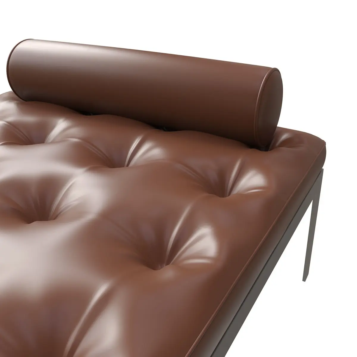 Designed in 2014, the Magi daybed is a tribute to the Magister sofa, deservedly considered one of the company’s iconic products. This elegant daybed revisits the sofa’s characteristic capitonné tufting, replacing the traditional button with a modern two-hole tufting technique. This sophisticated tailoring detail underscores the graphic impact of the tufting and the company’s expertise in implementing exceptionally complex tailoring techniques. Lifted off the floor on a tastefully unadorned metal base, the Magi bench can be outfitted with a convenient bolster.