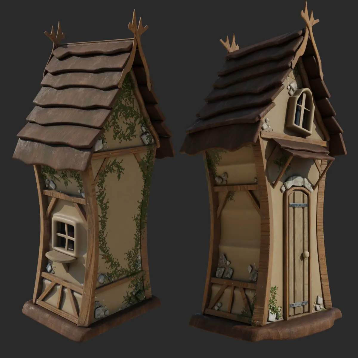 Detailed model of a magic hut. Subdivision ready. Optimized geometry for game import. 3 Levels of details available (Subdivision-ready) without texture issues.