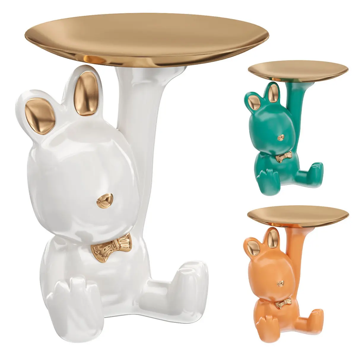 Bunny Statue Storage Display: The bunny figurine storage tray is perfect for counter, exquisitely details, versatile and attractive.Storage Organizer: Novelty rabbit figurine With storage tray, can storage watches, keys, jewelry, glasses, trinkets, makeup comestic etc.Home Decoration: This decorative statuestorage tray suitable for living room, tabletop, shelf, which looks lifelike and serves you like a waiter.Durable and Quality: Made of resin materail, fine craftmanship, handpainted, elegant character will light up your .Gift: Also great gift for easter, housewarming, wedding, special and festive occasions etc.