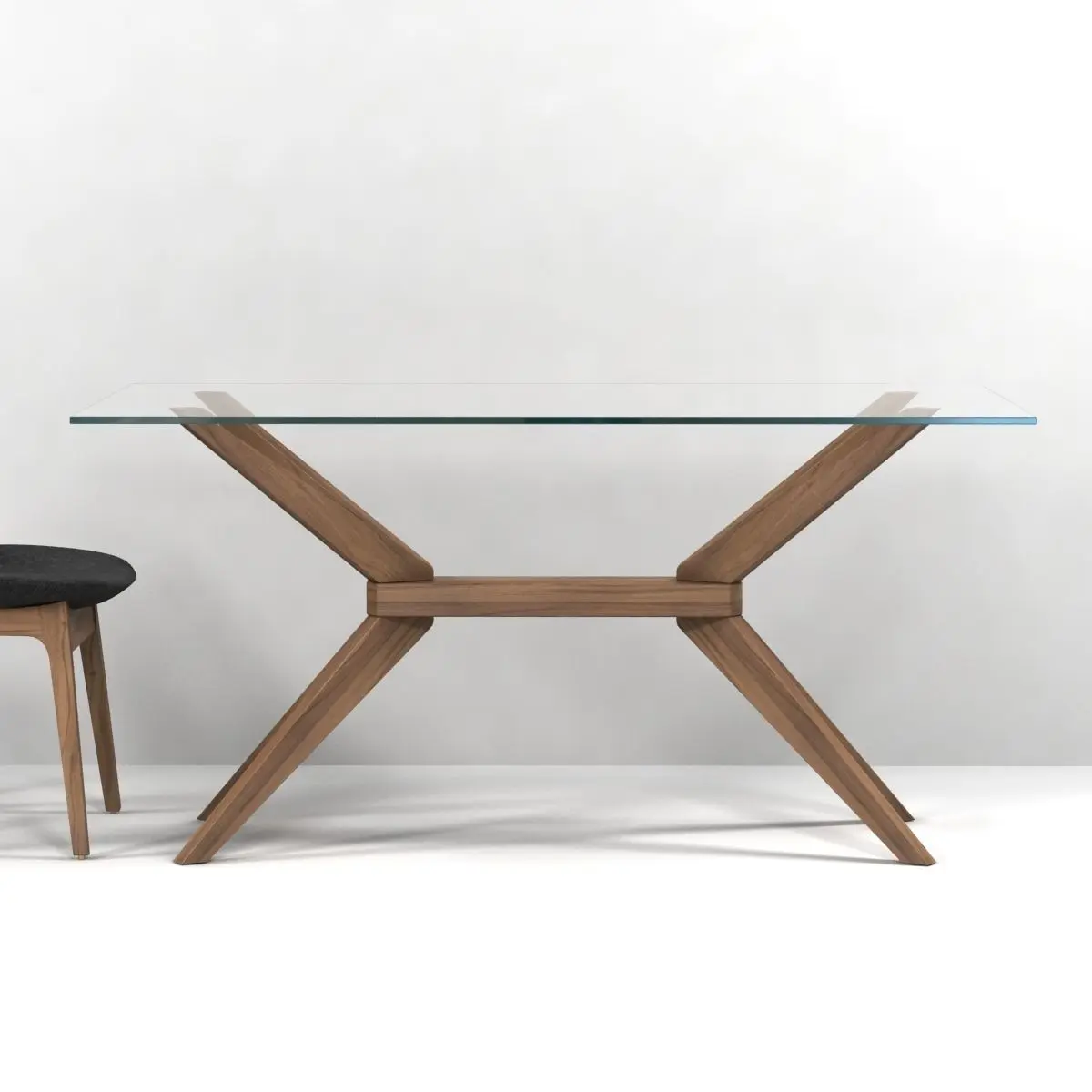 Magna Glass Dining TableThe Magna Glass Dining Table takes the idea of industrial chic, and lays on the glamour. It's done by adapting the basic shape of the girder to a clever support system for a modern dining table, then executing it in solid beech beneath a clear glass top that allows the geometry and construction details to show through. The rectangular dining table is just under 5 ft. on the long axis, offering plenty of room for up to 6 people. The Magna Glass Dining Table's base is finished in your choice of color for striking geometry and contrast beneath the glass.FeaturesContemporary dining table radiates with glamour and sophisticationSleek, 10m thick tempered glass lets structure of the base show throughSolid beech wood frame features four legs in a crisscrossed patternMade from CARB compliant materials for eco-friendly designAvailable in finish of your choiceWill complement any modern dining spaceDimensionsOverall: 59"w x 35.5"d x 29.5"h Table Top Thickness: 10mm Base: 45.5"w x 24"d x 29"h
