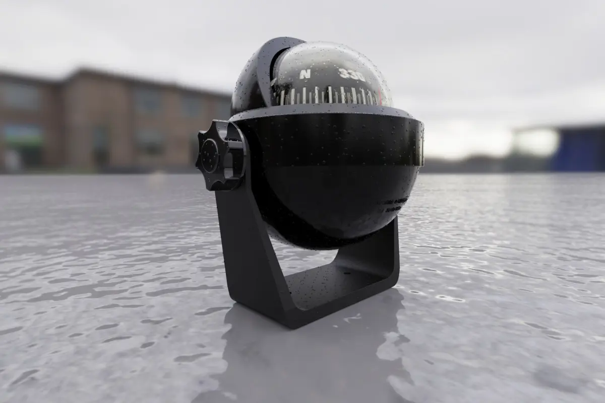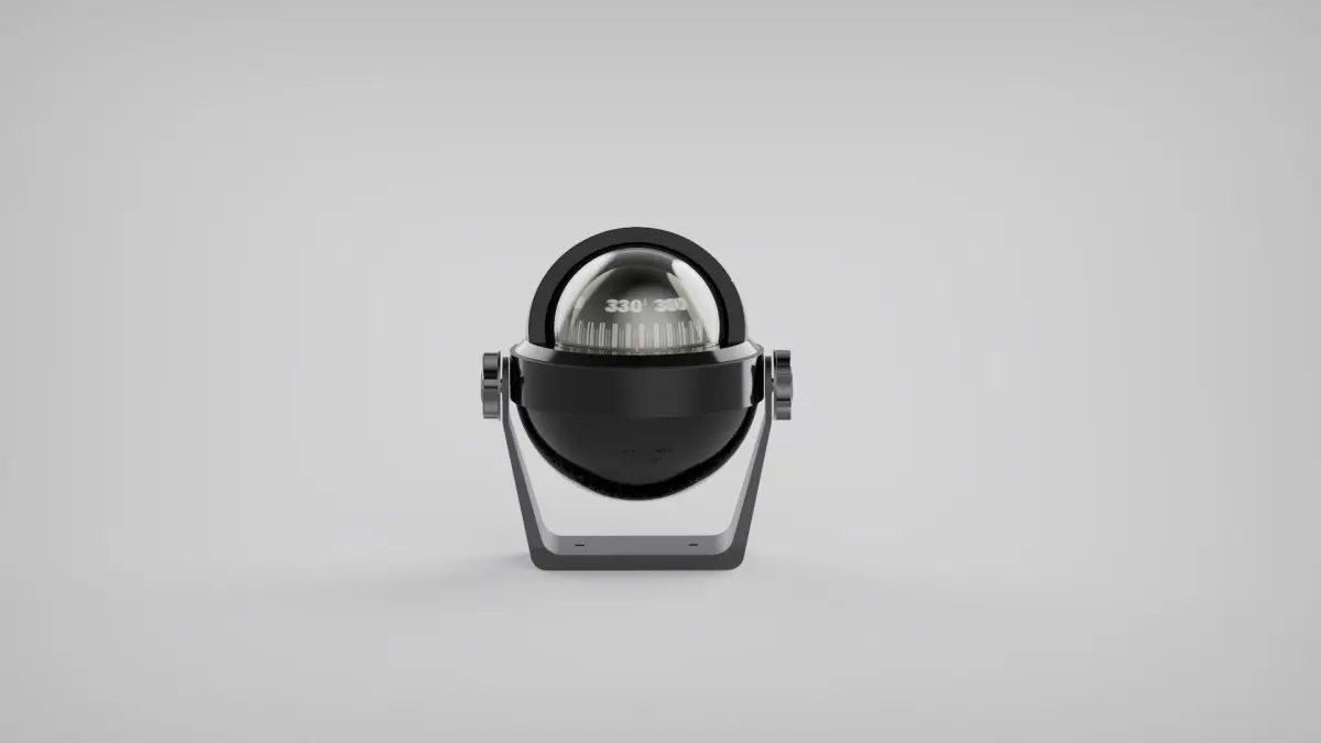 Magnetic Compass Stella BS2 produced by Riviera SRL Genova, made in Rhinoceros 3D. Compass with bracket support, pin suspension and anti-reflective screen.