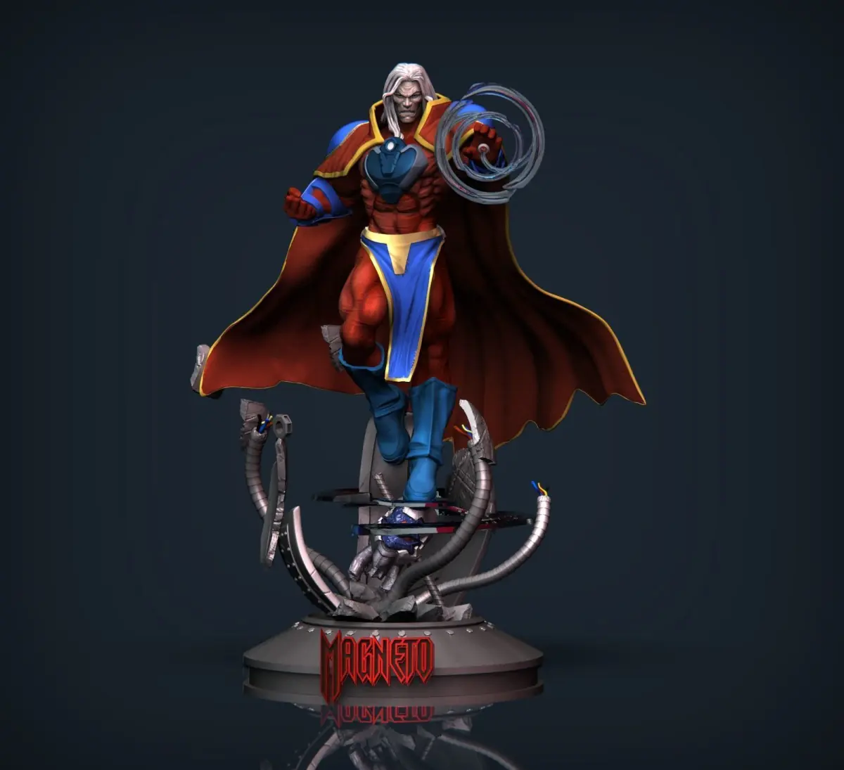Magneto Erik Magnus STL files collectibles fanart CGPyroMagneto (Erik Magnus) is a fusion character combining elements of DC’s Doc Magnus and Marvel’s Magneto.