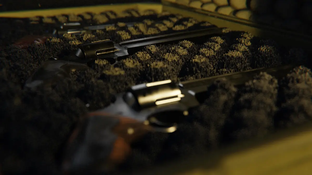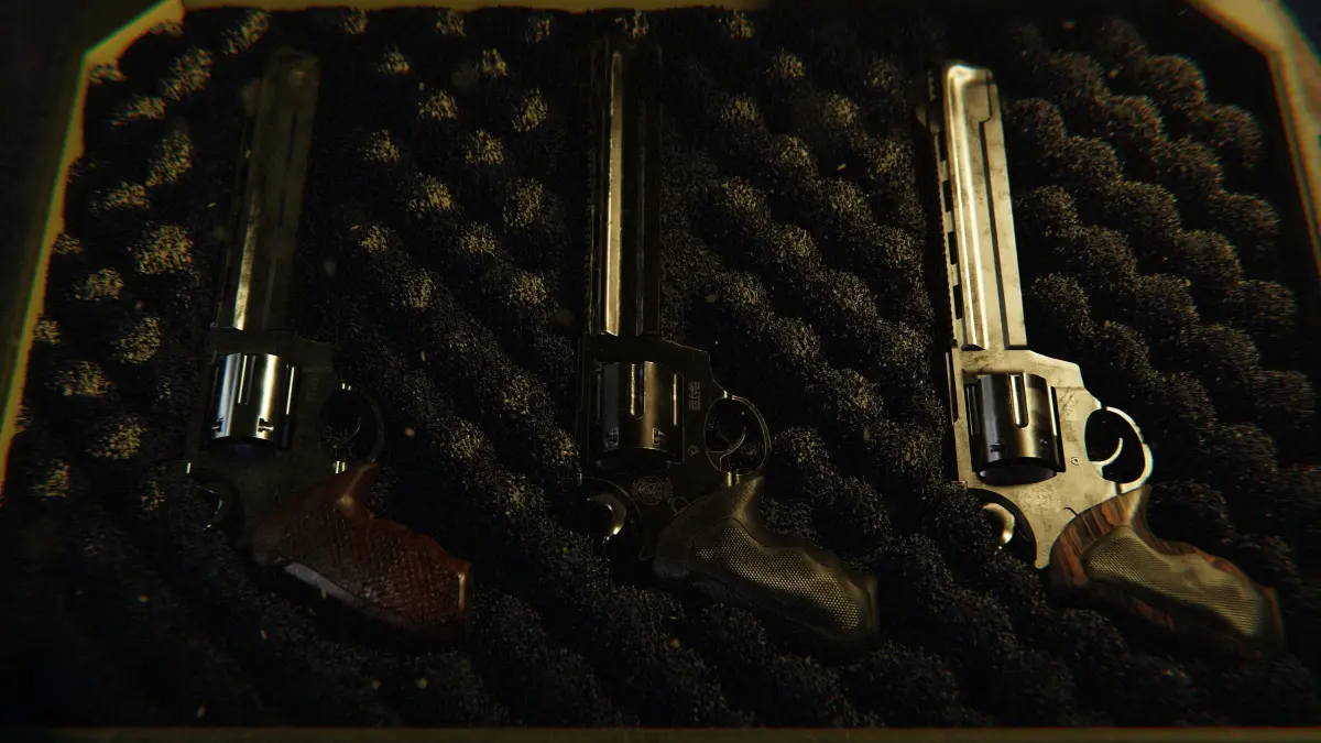 - [Magnum .44 - Exotic wood grip, black leather decal, black plastic back, Matte steel body]
