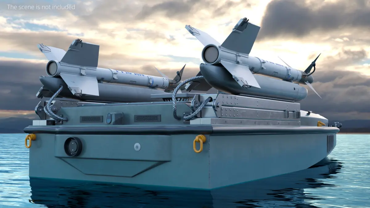 Magura V7 Drone with AIM9 Missiles on Water is a 3d model of a state-of-the-art naval vessel designed for covert operations and long-range attack missions.